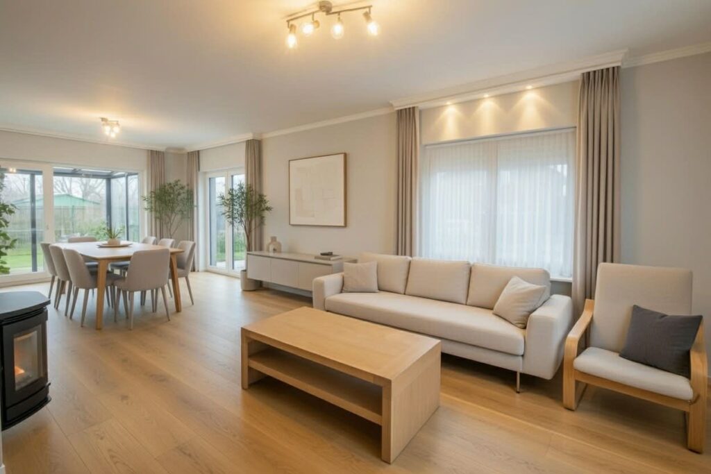 In een rustige woonwijk in Wevelgem bevindt zich deze verzorgde bungalow op een ruim perceel van 605 m². De woning biedt comfortabel en praktisch wonen in een groene en aangename omgeving. De bungalow beschikt over een ruime en gezellige leefruimte met houtkachel. Aansluitend bevindt zich de ruime, rustieke landelijke keuken, die eveneens voldoende plaats biedt […]