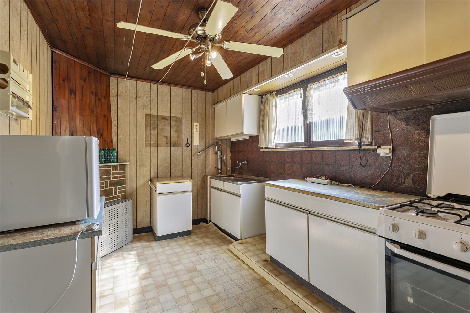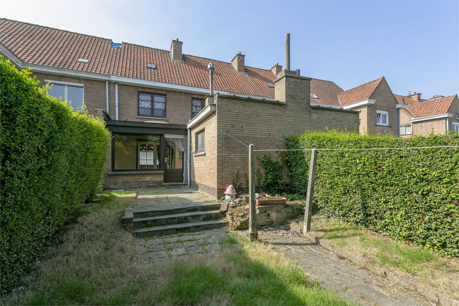 Een te renoveren woning gelegen in een rustige wijk nabij het centrum van Kortrijk. De karaktervolle woning heeft op het gelijkvloers een ruime inkomhal met aparte WC, grote living met aanpalende lichtrijke veranda, keuken die paalt aan de tuin, gezellig stadstuintje met tuinhuis. Op de 1ste verdieping bevinden zich de drie slaapkamers waaronder 2 grote kamers en 1 kleinere kamer. De badkamer bevindt zich ook al op de 1ste verdieping. Nog boven biedt de zolder mogelijkheden voor extra slaapkamers. Ook aanwezigheid van kelder, verwarming op gaskachels, aanwezigheid regenwaterput. Mogelijkheid huren garage dichtbij.
