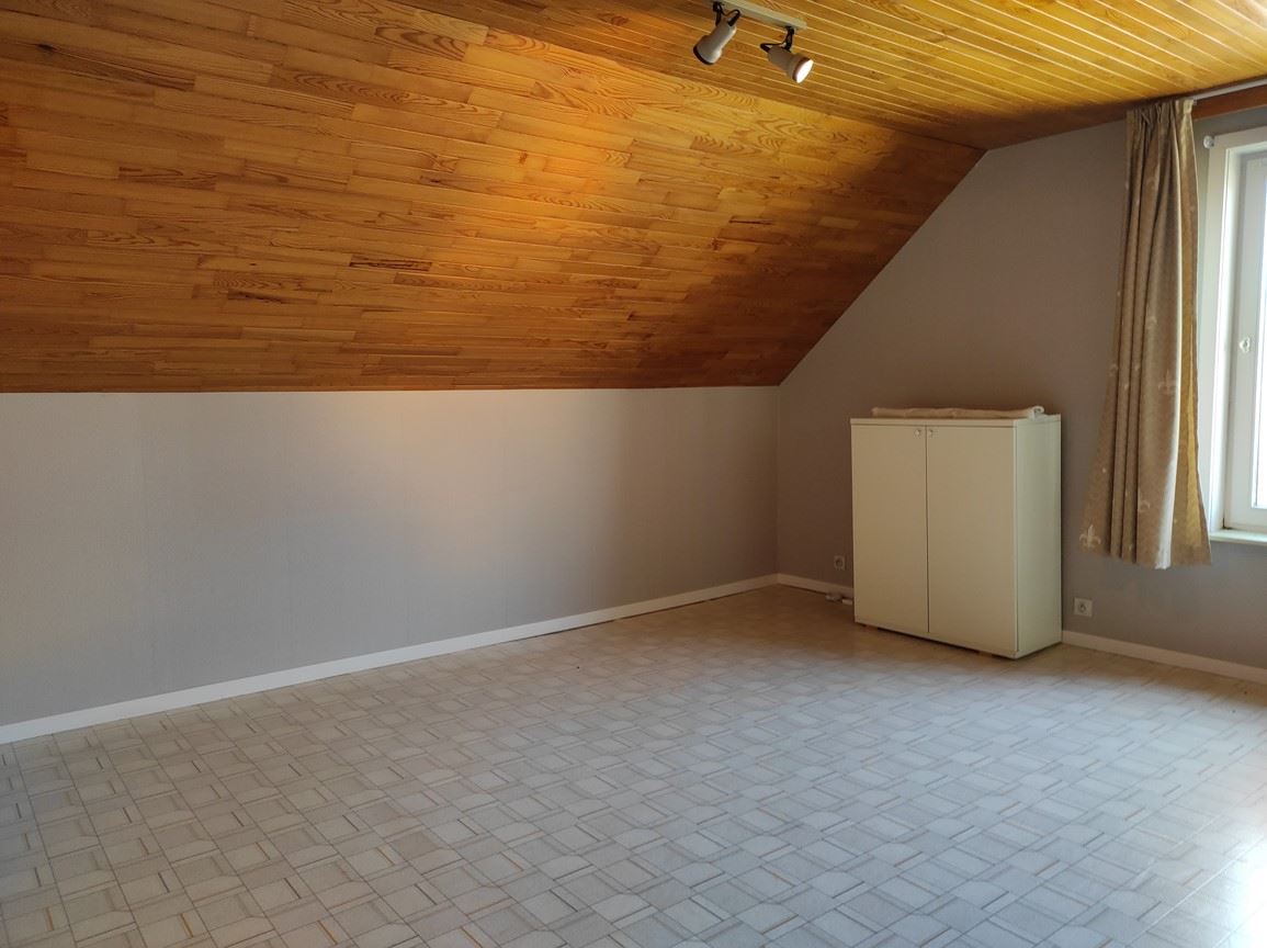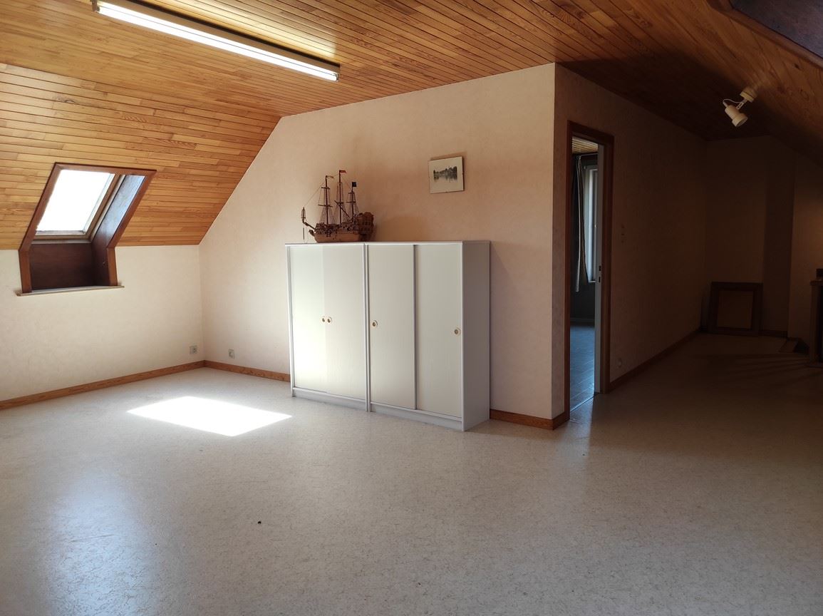RICHTPRIJS VAN 290 000 EURO. Een grote woning met maar liefst 5 slaapkamers (waaronder 3 op het gelijkvloers) gelegen in doodlopend & rustige straat, volledig uitgeruste keuken, dubbele garage (maar liefst 42m² perfect voor bijberoep, zelfstandigen, atelier etc.), badkamer met bad, gelijkvloers verwarming op gas, zolder volledig geïsoleerd, extra bureauruimte, deel van de woning heeft dubbel glas, tuin aanwezig rondom de woning met terras, twee wc’s etc, regenwaterput van 10 000L etc.