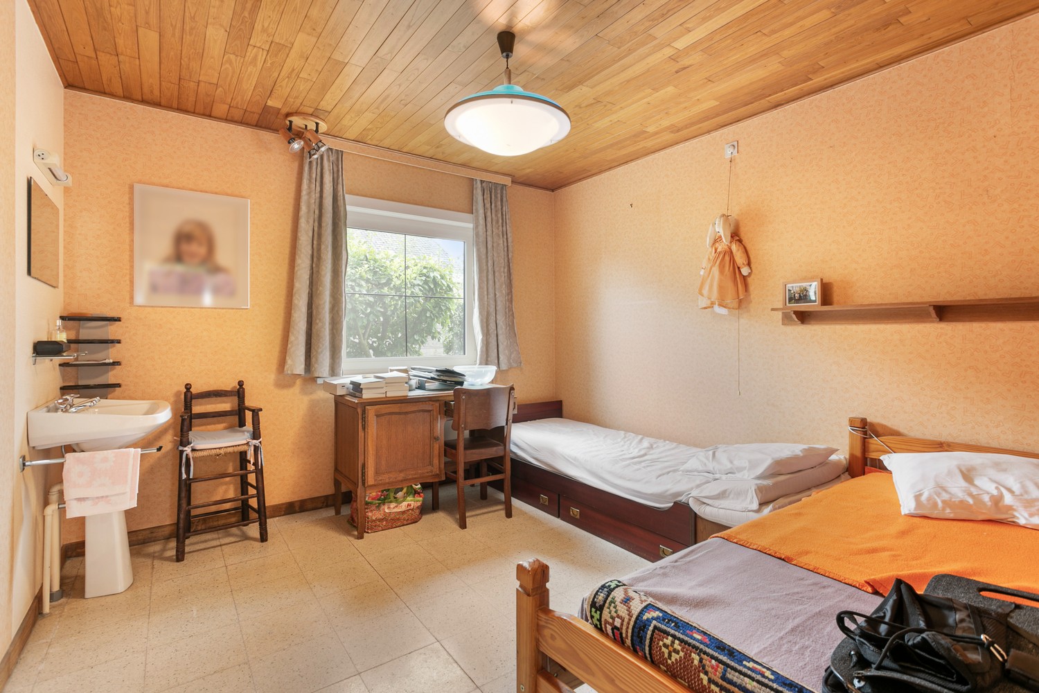 Een bungalow te koop op een perceel van 550m² met garage. Bij deze woning bevindt zich alles op gelijkvloers. Momenteel zijn er 3 slaapkamers aanwezig, grote living palend aan de zuidgerichte tuin, een ruime keuken, een badkamer met douche en bergruimte. De woning heeft bijna overal dubbel glas, verwarming is momenteel elektrisch. De woning dient te worden gerenoveerd. Op de zolderruimte bevindt zich momenteel enkel de boiler.