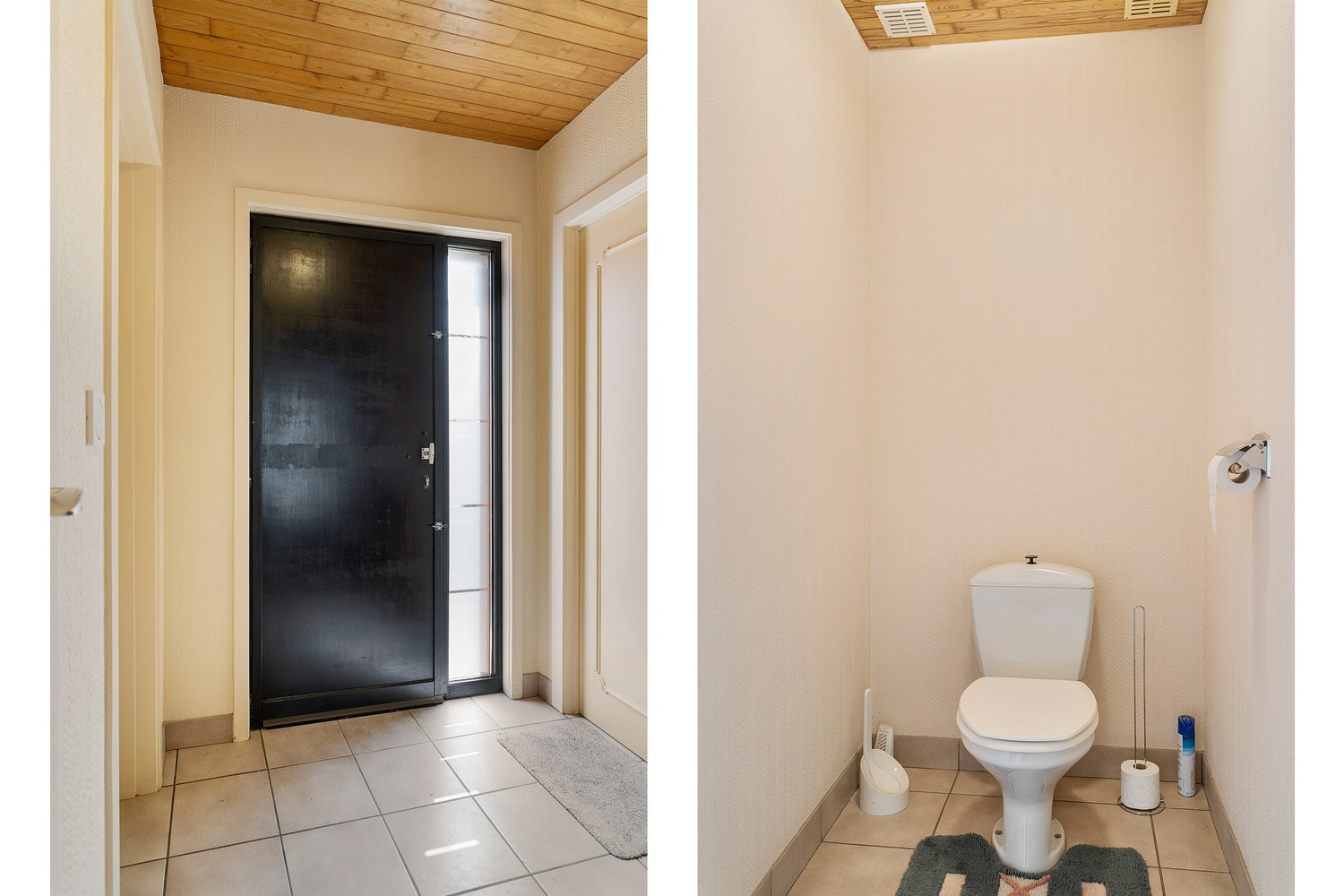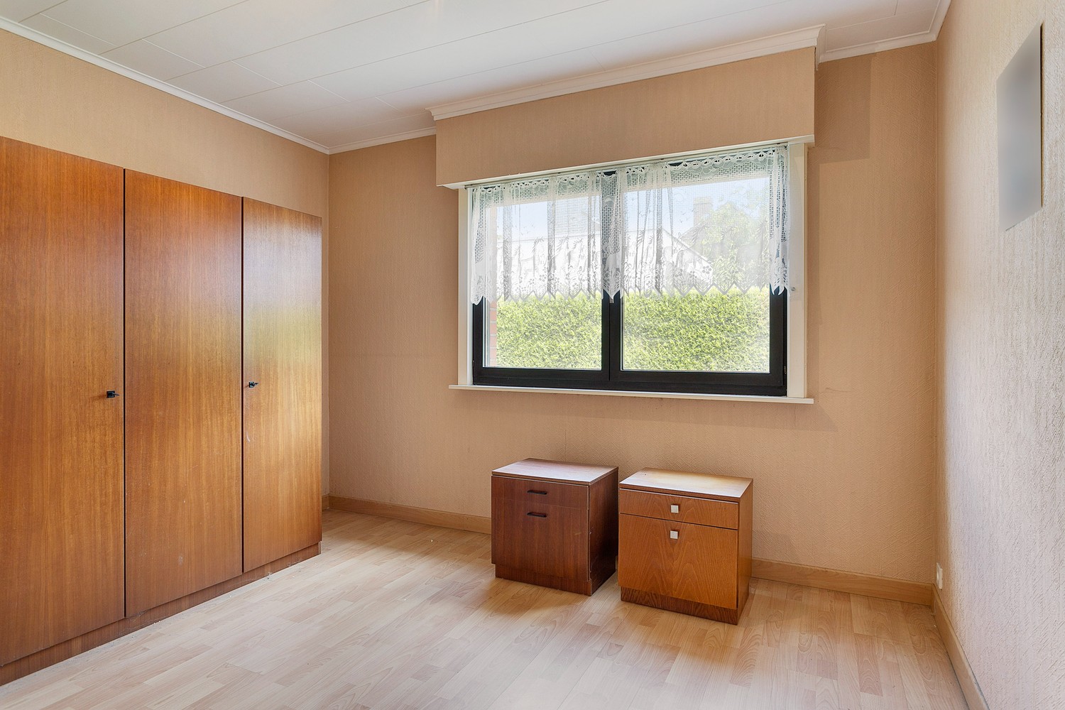 Een ruime bungalow van het jaar 1972 te koop op een perceel van 875m². Deze woning heeft een inkom met apart toilet, ruime living met aanpalend de keuken die uitgeeft op de tuin, praktische bergruimte met deur naar de tuin, drie slaapkamers gelijkvloers, badkamer met bad, zolderruimte etc. De woning heeft overal dubbel glas, CV op gas, regenwaterput van 7000L, aparte ruime garage, ruime oprit. De bungalow heeft een brede, diepe tuin met verzicht op de landbouwgronden. Deze woning is perfect voor mensen die liefst geen trappen willen doen. Vraag nu uw bezoek aan.