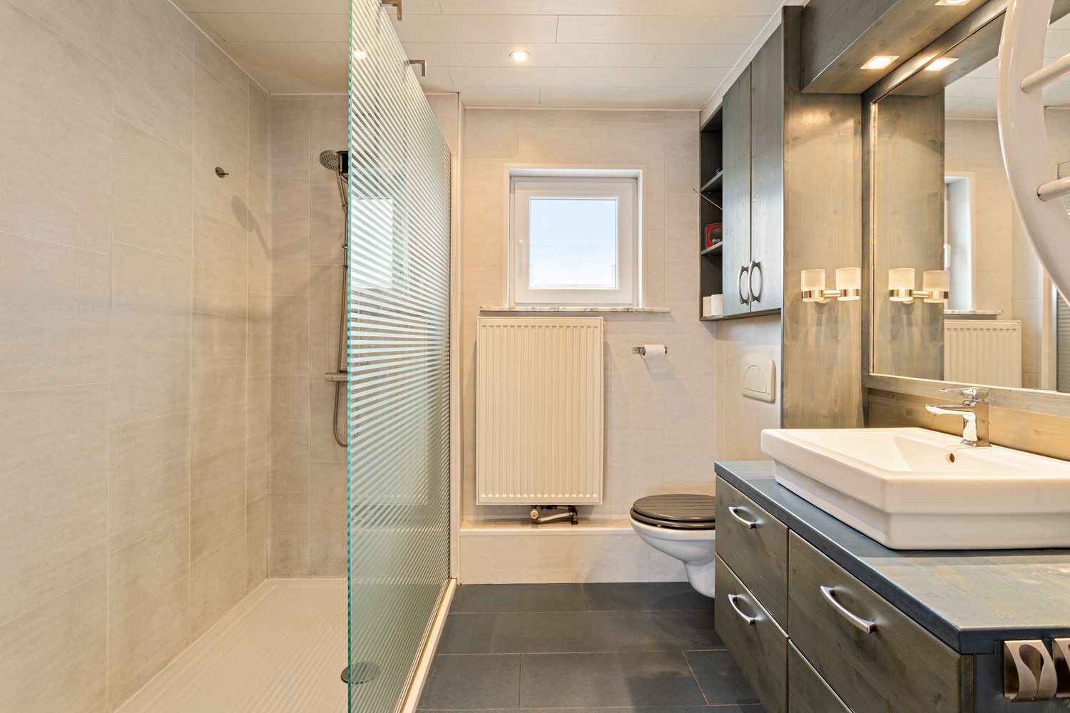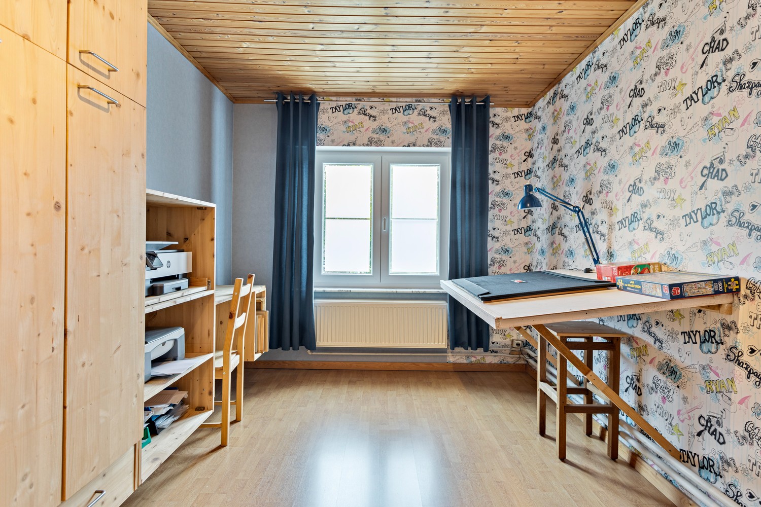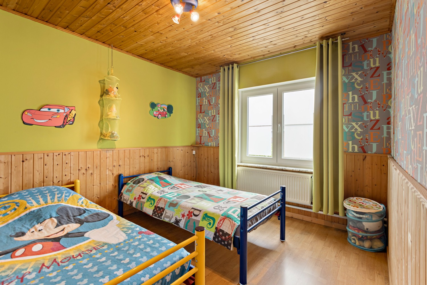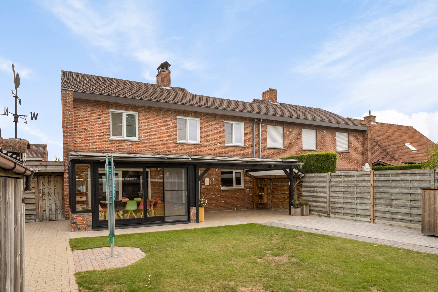 Deze energiezuinige halfopen woning bevindt zich in een rustige wijk in een doodlopende straat, slechts enkele minuten verwijderd van de autostrade (centrale ligging). Deze woning heeft op gelijkvloers een ruime inkomhal met toilet, een ruime living met zicht op de veranda en de tuin, aanpalend de keuken met uitzicht op de tuin, garage met sectionale poort en een overdekt terras met Westgerichte tuin + tuinhuis + carport. Op de 1ste verdieping zijn er 4 slaapkamers (sommige met inbouwkasten), badkamer met inloopdouche en toilet en extra zolderruimte. Spouwmuren geïsoleerd, overal dubbel glas (boven hoogrendementsglas), 12 zonnepanelen, regenwaterput van 7500L, elektriciteit bijna conform (wordt eventueel nog in orde gebracht), verwarming op gas, aanwezigheid pelletkachel, elektrische lattestoren etc. Vraag nu uw bezoek aan!