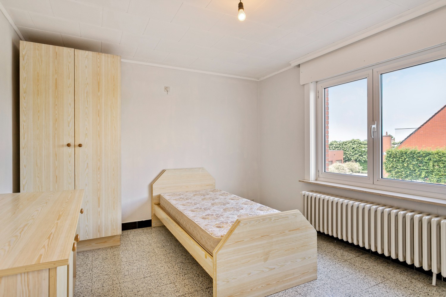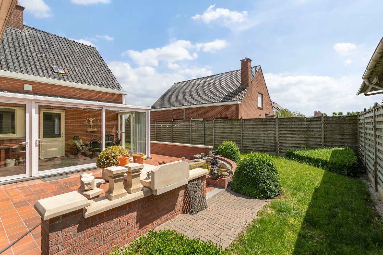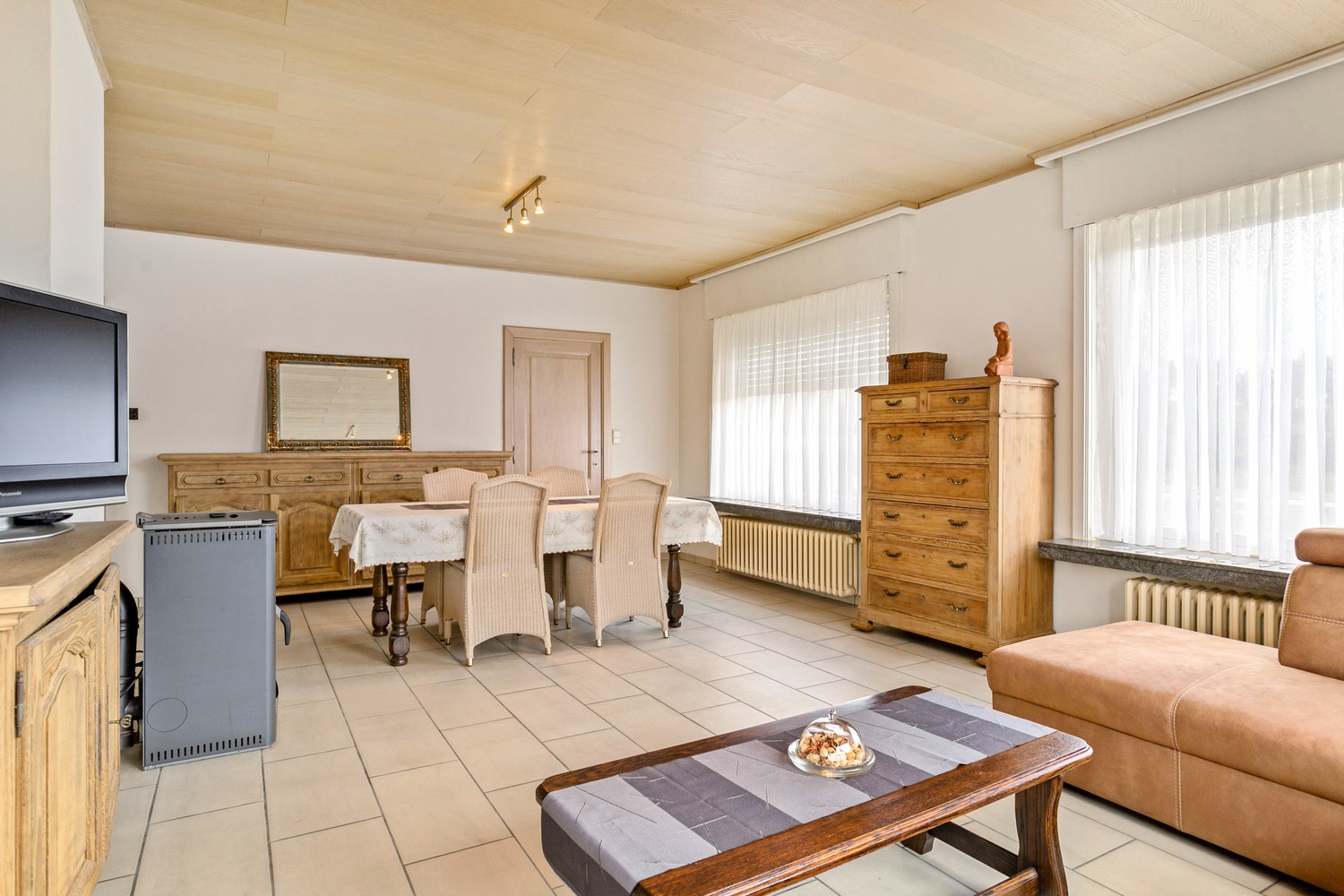 Een ruime alleenstaande woning met 5 slaapkamers (zowel gelijkvloers als op de 1ste verdieping en hele ruime kamers!) op een perceel van 1158m². De villa heeft een magazijn aan de achterkant van 300m² met twee garagepoorten ( kan worden gesloopt). De rechterkant van de woning heeft een lange gebetonneerde oprit met elektrische poort volledig afgesloten. De villa heeft een ruime inkom, ruime living met aanpalend de keuken die uitkijkt op de veranda, een tuin, badkamer op gelijkvloers met douche en bad, twee toiletten, wasruimte, kelder, ruime slaapkamers, zolderruimte die nog kan worden ingevuld. De woning wordt verwarmd op stookolie (evt. gas in de straat, aanwezigheid van regenwaterputten etc. Langs achter weids uitzicht op velden. Residentiële buurt met wel mogelijkheden voor eventueel handelszaak, horeca, kantoren/diensten, vrije beroepen en kleine lokale bedrijvigheid.
