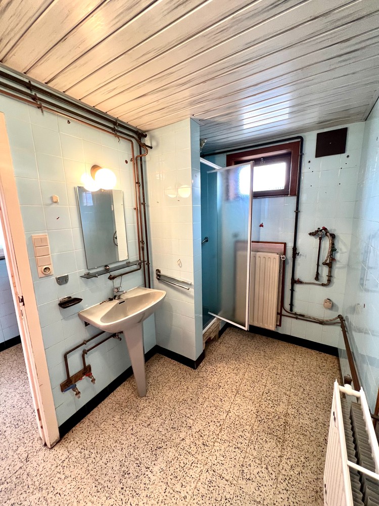 Deze te renoveren woning op een ruim perceel van 848 m2 betreedt je via de inkomhal waarna je de authentieke leefruimte binnenkomt met aansluiting voor pelletkachel/houtkachel,…. Verder op de gelijkvloerse verdieping is er ook nog de basiskeuken, de badkamer, het toilet en een extra voorruimte. Op de eerste verdieping bevinden zich 4 slaapkamers en een aparte kleine kamer. De woning wordt verwarmd door centrale verwarming op gas. Verder beschikt de woning ook over een droge kelder en een ruime geïsoleerde zolder. Aangebouwd aan de woning is er nog een ruime garage/atelier/magazijn die kan gebruikt worden voor tal van doeleinden. Een extra troef is de grote zuid-oost gerichte tuin. Interesse? Vraag nu uw bezoek aan!