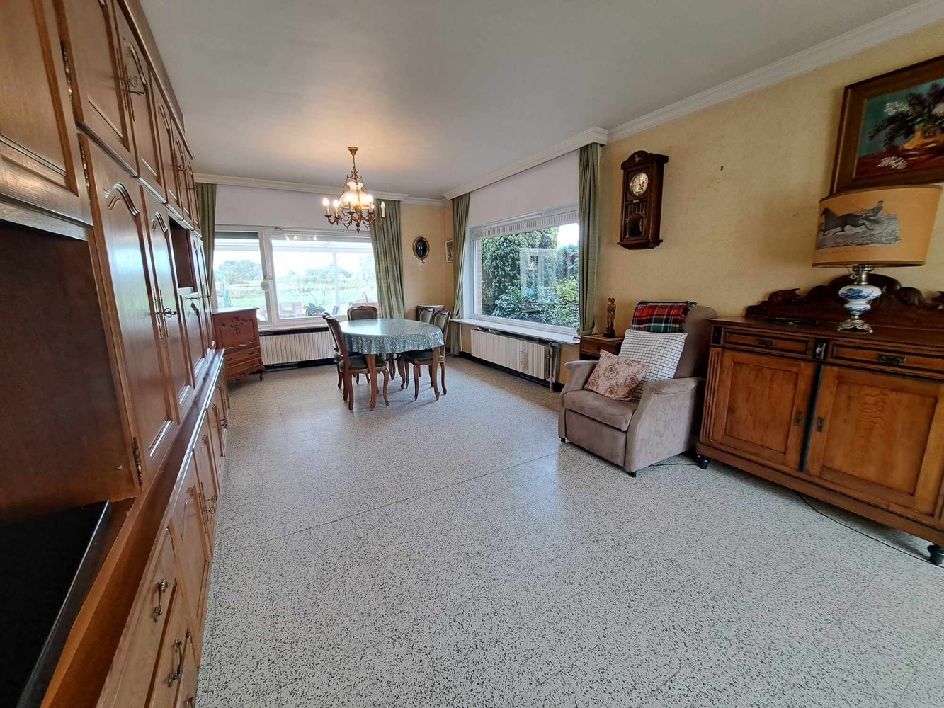 Deze woning bevindt zich in een rustige woonwijk op slechts enkele minuten van Kortrijk met een landelijk uitzicht op een perceel van 456m². U betreedt de woning in een ruime inkom met apart toilet. Hiernaast bevindt zich de living die paalt aan de keuken en de veranda met heel veel lichtinval. Er is ook op gelijkvloers een diepe garage met wasplaats. Via de veranda betreed je de brede en diepe tuin met landelijk uitzicht. Op de 1ste verdieping zijn er drie slaapkamers en een badkamer. Aanwezigheid kelder, hoofdzakelijk dubbel glas, centrale verwarming met condensatieketel, aanwezigheid kelder, ruime oprit + zijdoorgang, 2 toiletten etc. Vraag nu uw bezoek aan! EPC veel beter mits isoleren dak.