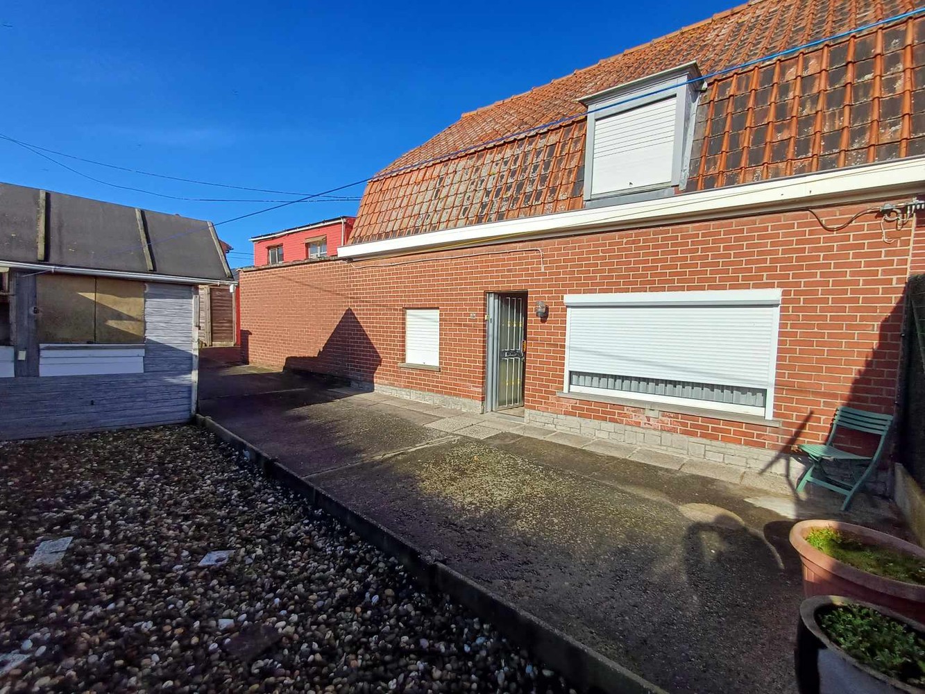 Deze woning is gelegen in een rustige buurt in Moorsele. Er is een gemeenschappelijke oprit die leidt naar deze inwaartse woning. Deze woning heeft een Zuidgericht terras. U komt de woning binnen in de ruime living met aanpalend de keuken, hiernaast is de badkamer. Op de 1ste verdieping bevinden er zich nog 3 ruimtes en de zolderruimte. Er is ook nog een groot ‘duivenkot’ van vroeger en veel opslagruimte. Deze woning kan worden heropgebouwd aan 6% waarbij een volwaardige bovenverdieping kan worden gebouwd zoals de woning hiernaast. Gas-water en elektriciteitsaansluiting aanwezig.