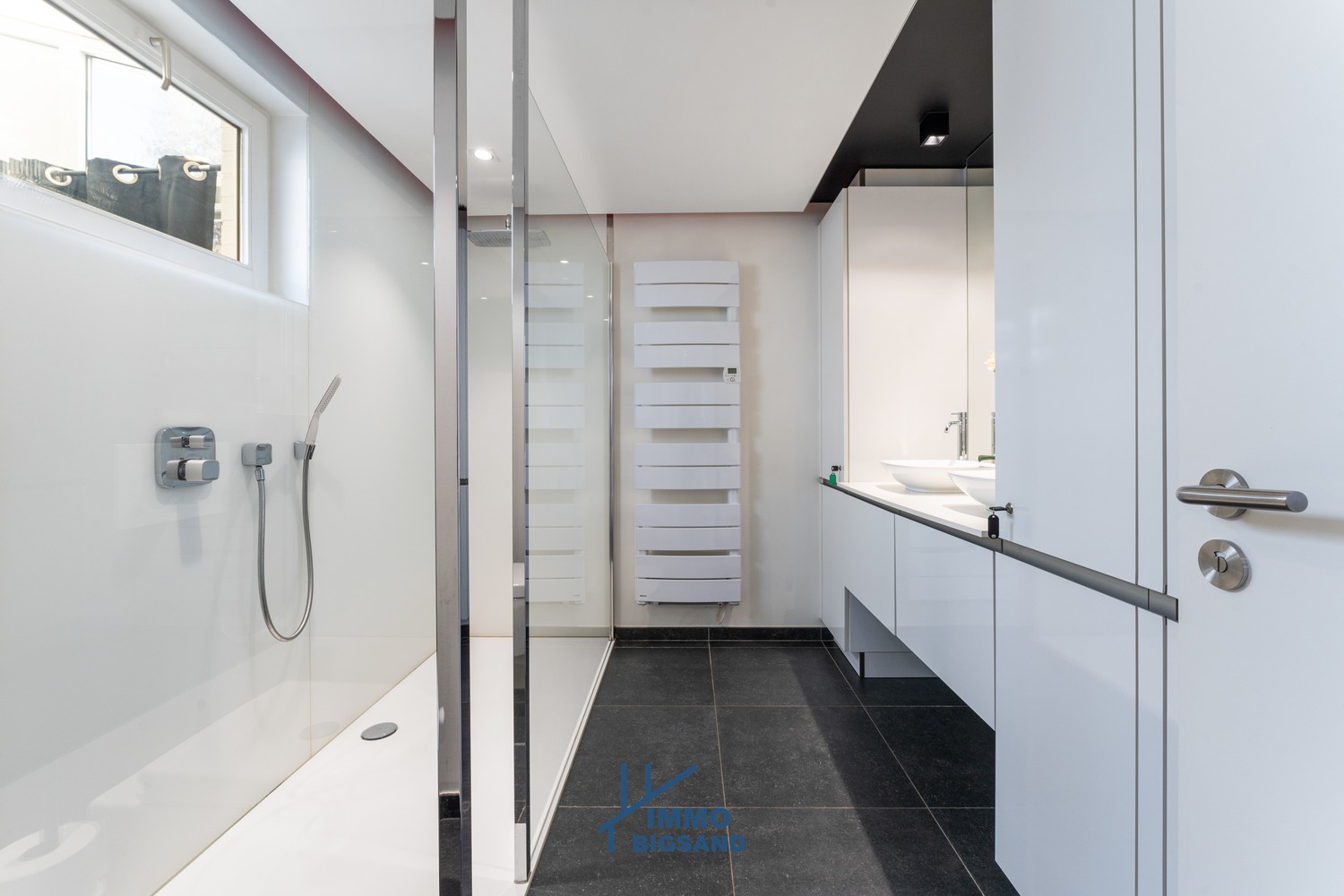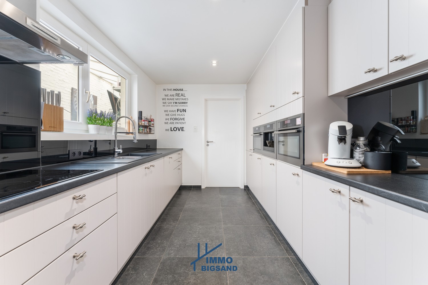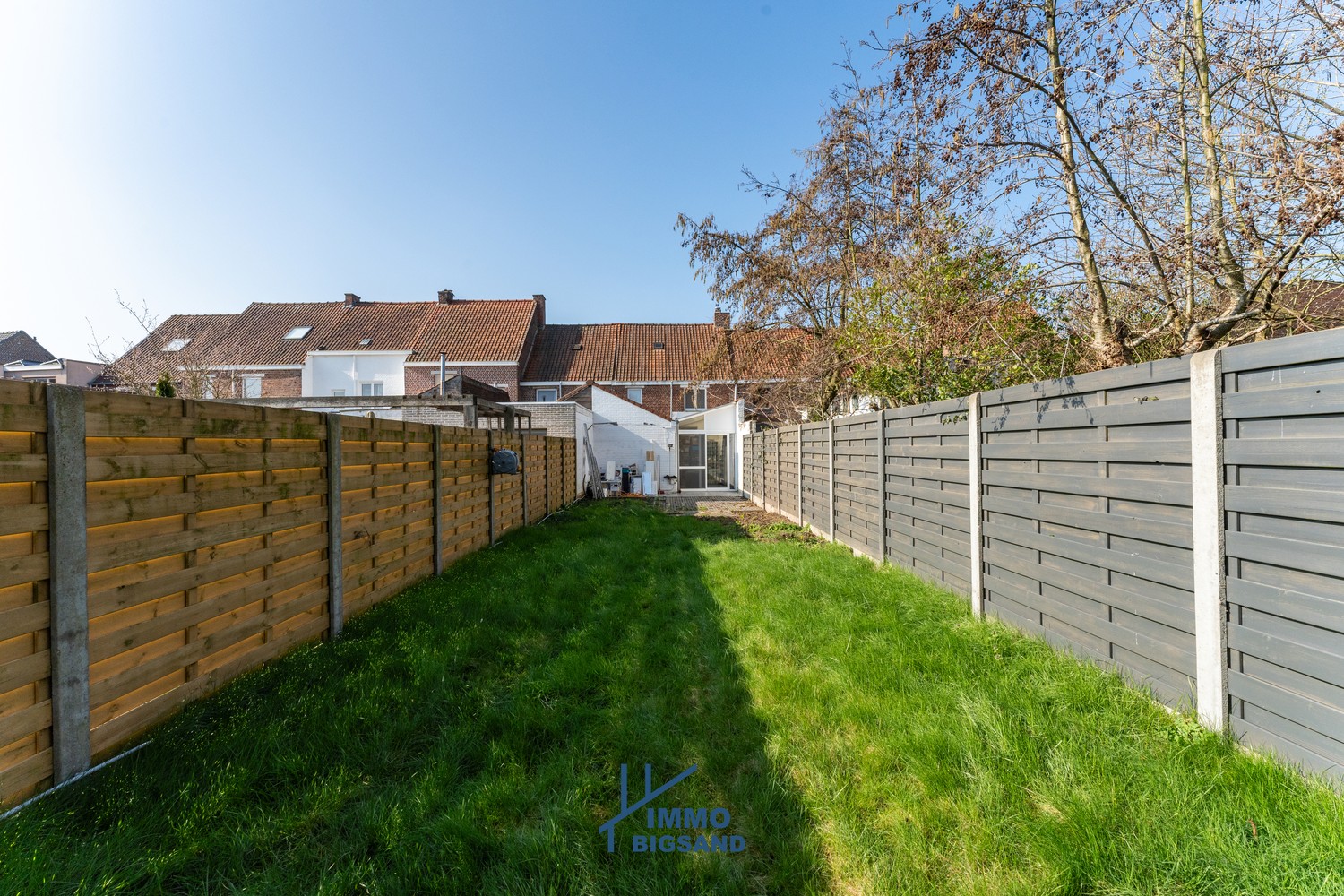 Deze woning werd deels recent gerenoveerd. Er is geen garage maar wel een zijdoorgang, aldus perfect voor fietsen en dergelijke. U komt de woning binnen via de inkomhal, die komt uit op de ruime living. Hiernaast heb je de gloednieuwe keuken met al de nodige toestellen (inbouwkoffiemachine, oven, microgolf, vaatwas). De badkamer werd ook recent volledig vernieuwd met inloopdouche. Er is ook een veranda die kan dienen als polyvalente ruimte. Die geeft toegang tot de tuin. Er is ook een zij-ingang perfect voor fietsen en stockage. Op de 1ste verdieping bevinden zich 3 kamers (waaronder één die wordt gebruikt als annex dressing). Via de vaste trap kom je in de zolderruimte die kan dienen als stockageruimte of als toekomstige extra slaapkamer. Vernieuwde CV-ketel, conforme elektriciteit, overal dubbel glas, zolder geïsoleerd, aanwezigheid regenwaterput