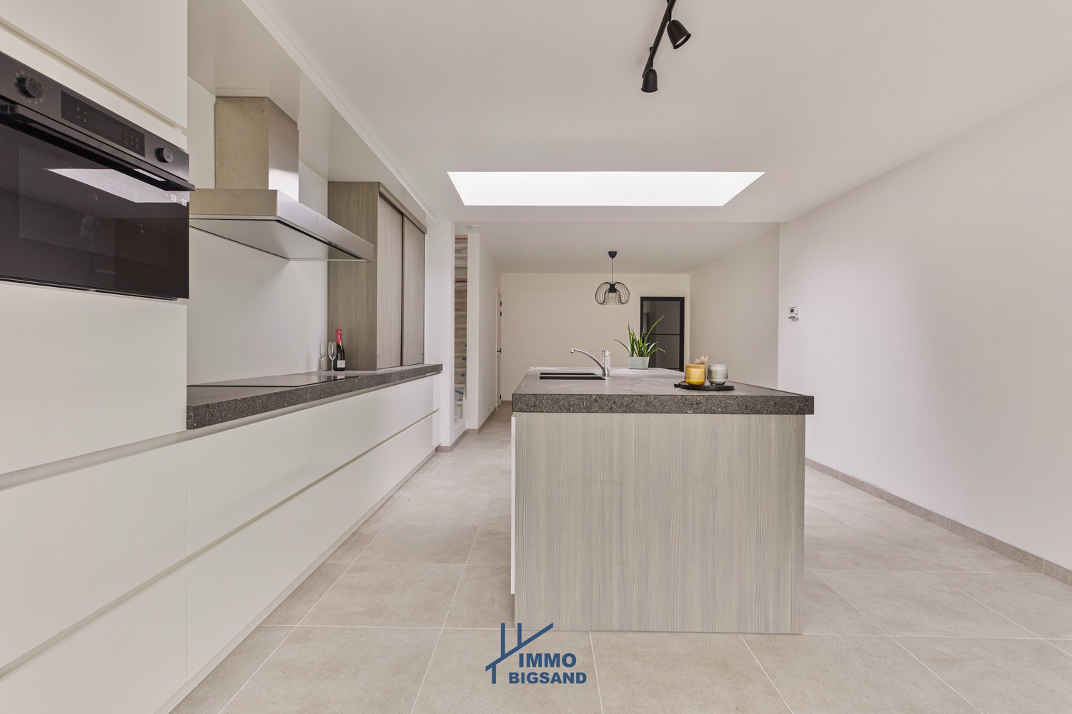 Doe een bod vanaf 309 000 EURO. Deze woning werd volledig gerenoveerd; asbestvrije woning, vernieuwd dak, vloerverwarming op warmtepomp, 6 zonnepanelen etc. U komt de woning binnen via de ruime inkomhal, hiernaast aan de straatkant heb je de sanitaire ruimte waarbij er plaats is voor een was/droogmachine, stockageruimte, plaats voor fietsen etc. Apart toilet gelijkvloers. Verder heb je de ruime living met open keuken; de keuken is volledig geïnstalleerd met al de nodige toestellen (vaatwas, microgolf, oven). Via de porte-fênêtre heb je toegang tot de Zuidgerichte tuin. Op de 1ste verdieping heb je een ruime inkomhal met bureauplaats; de badkamer met bad en douche, apart toilet alsook de 1ste slaapkamer. Via de vaste trap ga je naar de tweede verdieping waar er zich nog twee slaapkamers bevinden. Er is ook nog een zolderruimte. Energielabel A, ventilatievoorziening, hoogrendementsglas, mogelijkheid tot het kopen van een garage.