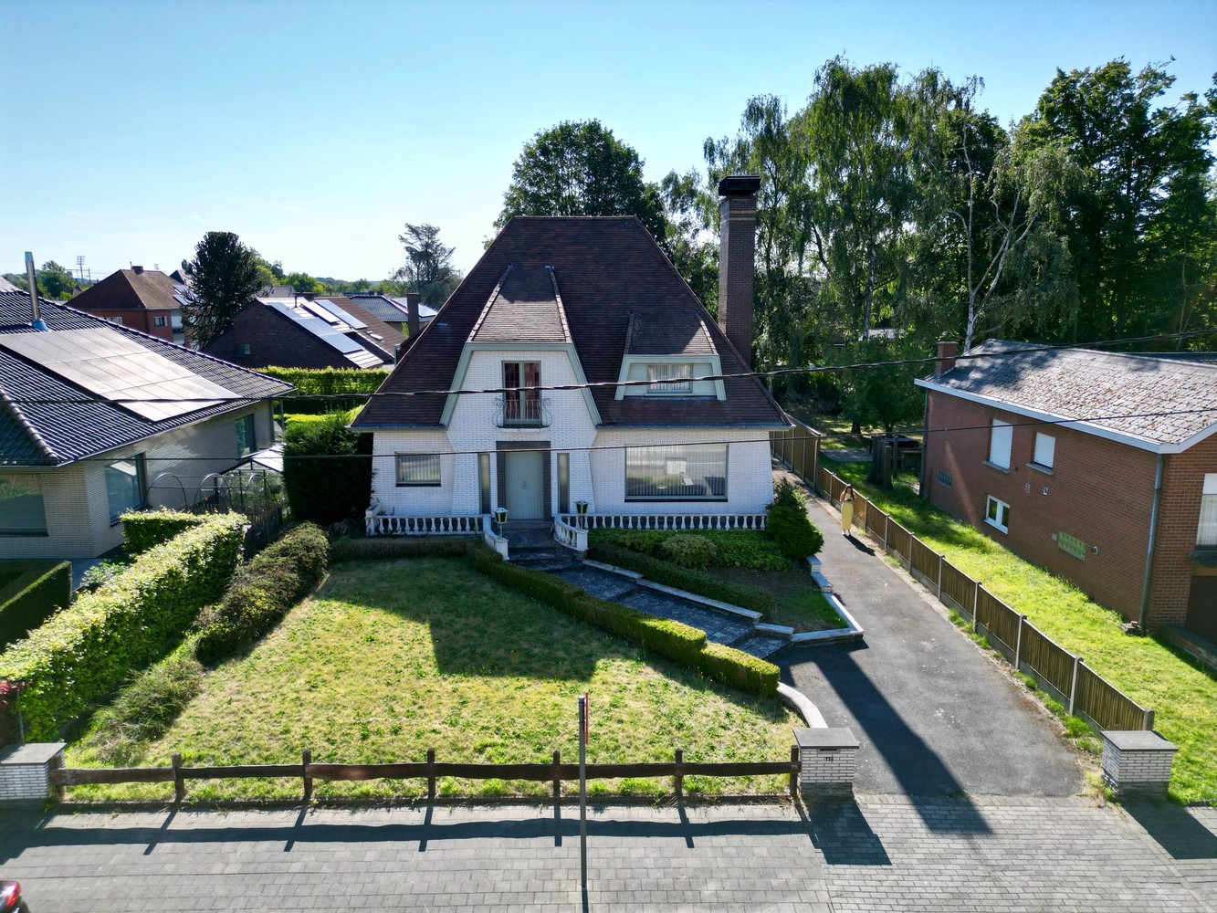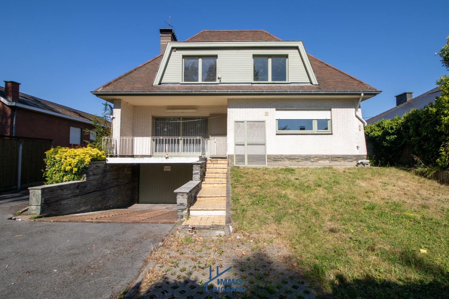 Deze te renoveren woning is gelegen in een rustige residentiële buurt te Harelbeke. De woning heeft een diepe oprit met een ondergrondse garage langs de achterkant van de woning. U komt de woning binnen via de ruime inkomhal met hoge plafonds. Hier bevindt zich ook een vestiaire en een apart toilet. Aan de rechterkant heb je de ruime living die uitzicht biedt op de tuin en het terras. Hiernaast heb je de keuken die aldus toegang biedt tot het terras en de tuin. Er bevindt zich een badkamer gelijkvloers en op de 1ste verdieping. Op de 1ste verdieping heb je aldus een badkamer en drie ruime slaapkamers. Er is ook nog een zolderruimte. De woning is ook volledig onderkelderd; hier bevindt zich nog een extra wasruimte die gebruikt wordt als ‘bijkeuken’ en ‘wasplek’. Ook een enorme diepe garage met aanwezigheid nutsvoorzieningen/installaties. Woning wordt verwarmd op stookolie (elke verdieping), aanwezigheid regenwaterput. Vraag nu uw bezoek aan.