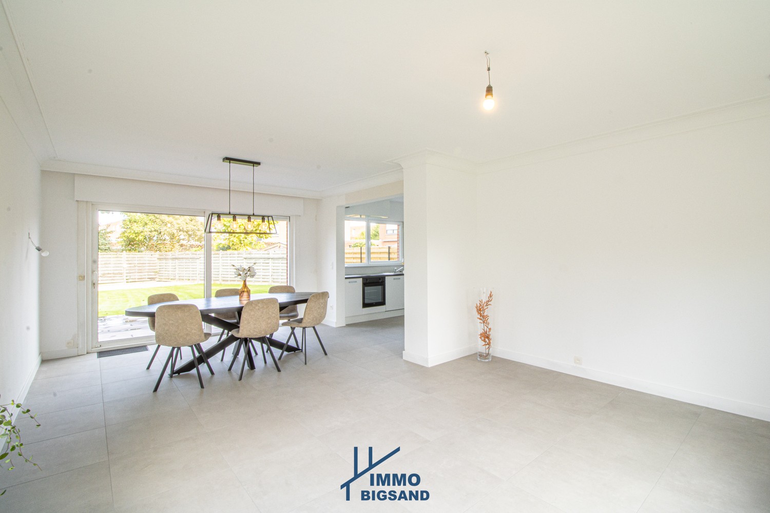 We komen binnen in de inkomhal, met daar ook een apart toilet, aansluitend heb je de lichtrijke living met porte-fênêtre die een mooi uitzicht biedt op de tuin. Hiernaast de open, volledig geïnstalleerde keuken met berging waarbij je ook zicht hebt op de tuin. U kan via de woning door naar de inpandige garage met sectionale poort.