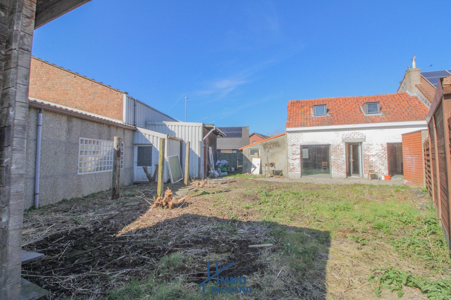 Deze verder te renoveren woning heeft veel potentieel. Het perceel heeft een straatbreedte van 19,2m en betreft aldus de woning + garage ernaast. U komt de woning binnen via de inkomhal die hierna dan uitgeeft op de grote raampartijen (bijna overal hoogrendementsglas) die uitzicht biedt op de Zuidgerichte tuin. Voorzieningen en elektriciteit werden reeds deel klaargelegd/gerenoveerd. Aan de hand van onze renderfoto zie je de eventueel toekomstige indeling van keuken/living. Hiernaast op gelijkvloers heb je de badkamer. Via de trap kom je uit op de 1ste verdieping die voldoende ruim is voor minstens 2 slaapkamers. Woning wordt verwarmd op gaskachel. Er is ook een aparte hoge garage/opslagruimte. Vraag nu uw bezoek aan.