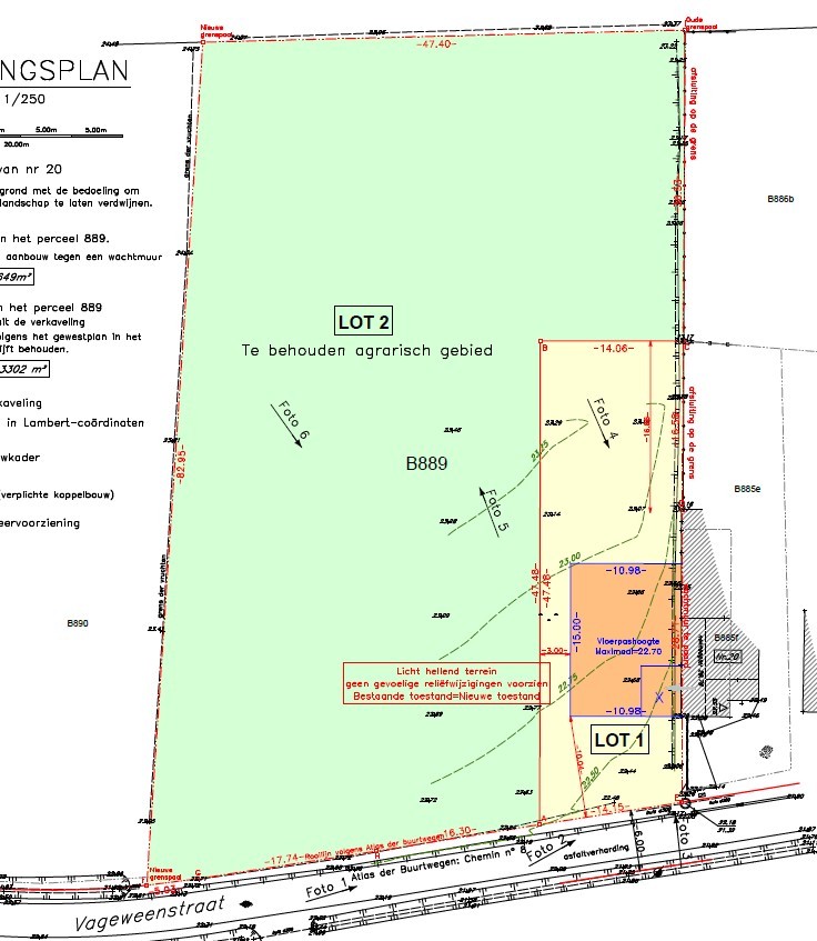Ruim perceel bouwgrond voor een halfopen bebouwing met een totale oppervlakte van 3.951 m² (naast huisnr 20). Bouwkader van 11m bouwbreedte en 15m bouwdiepte. Zicht op de achterliggende landbouwgronden en mogelijk bewoonbare oppervlakte van ruim 300 m². Totale breedte perceel van 53m en 83m diepte. Zonder bouwverplichting. Vanafprijs 215.000 EUR.