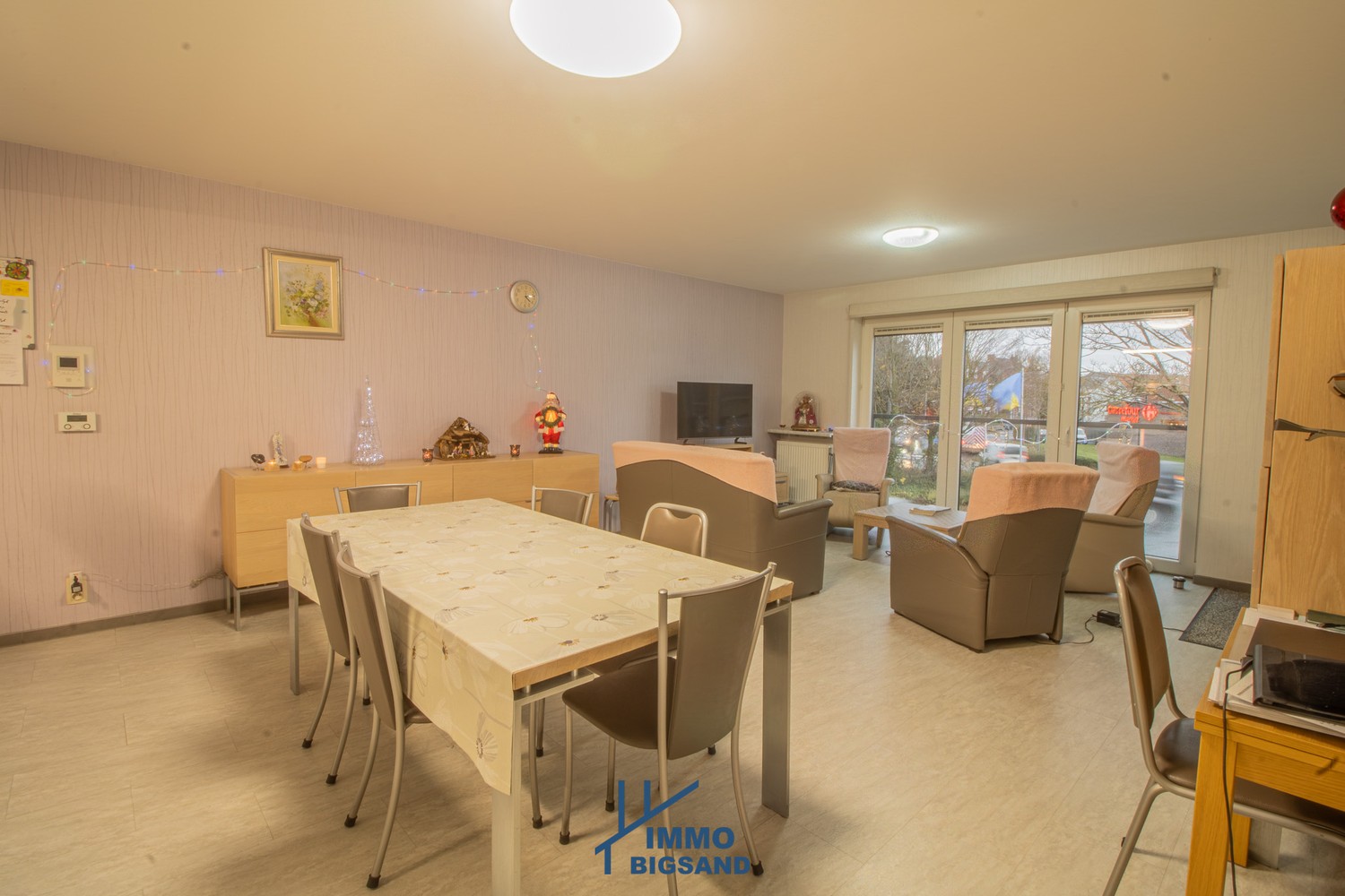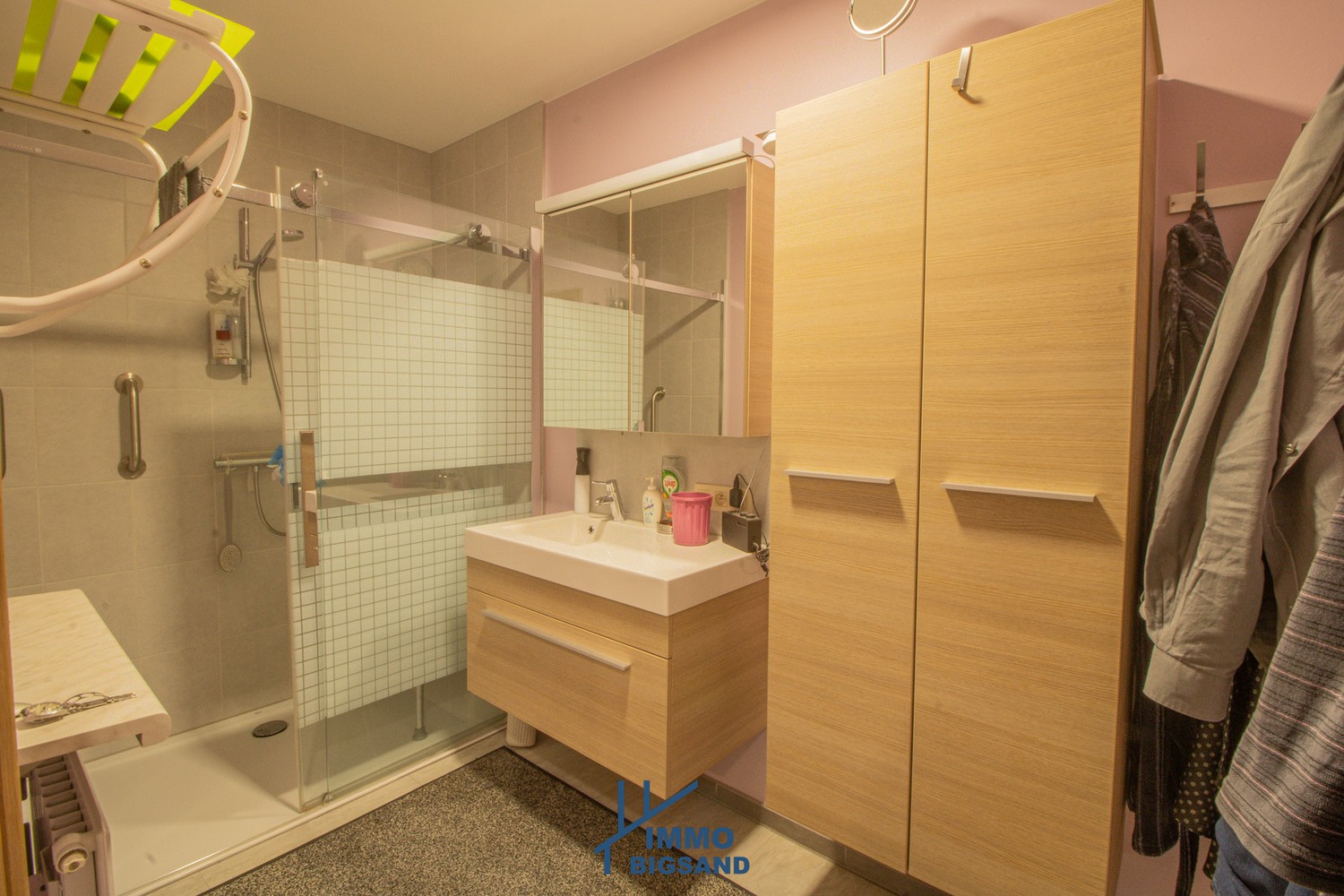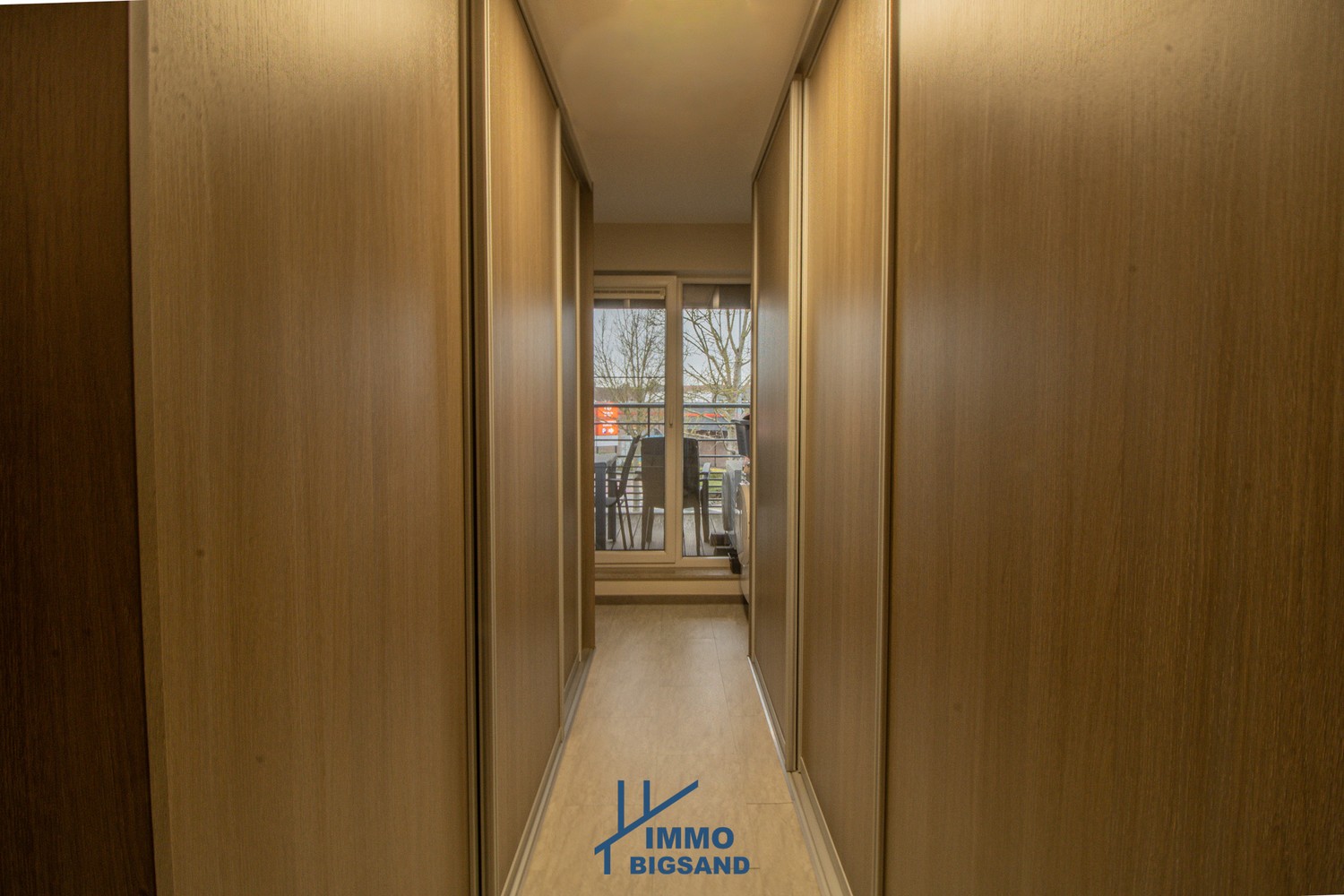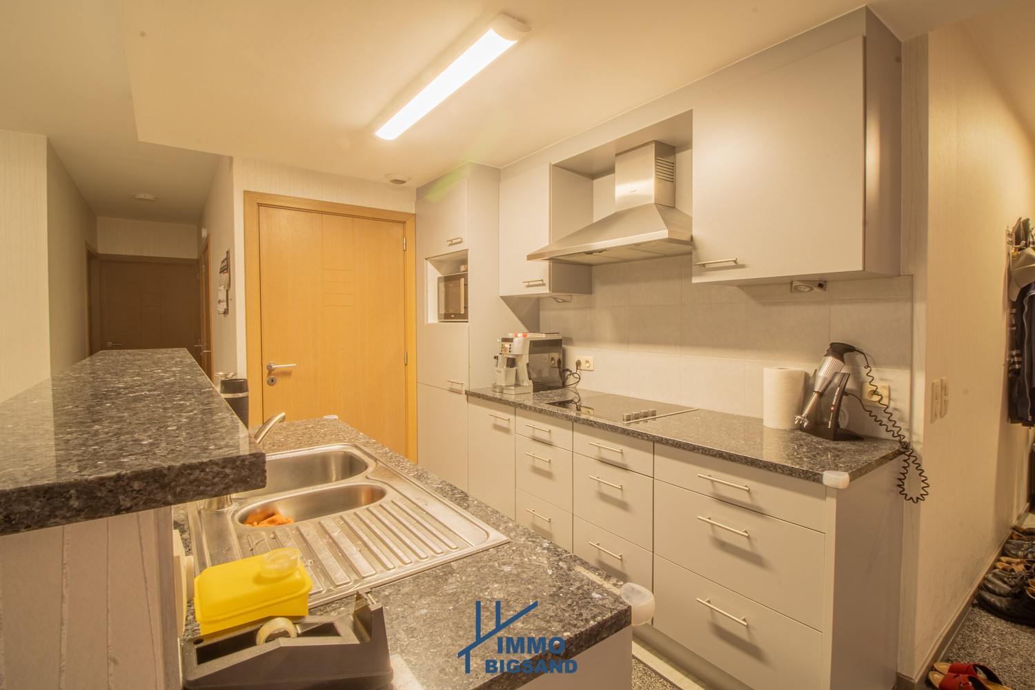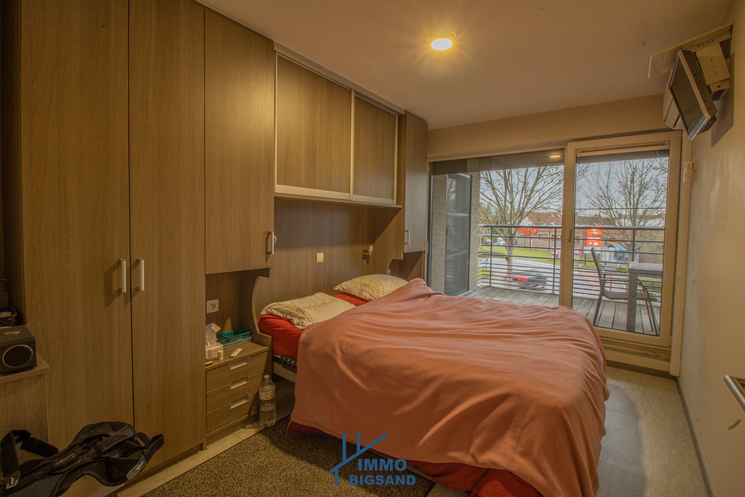 De lichtrijke leefruimte sluit naadloos aan op een mooie, volledig uitgeruste keuken en een praktische inkomhal. Er zijn twee slaapkamers, waarvan één momenteel werd ingericht als ruime dressing en een uitgeruste badkamer met inloopdouche en wastafel.