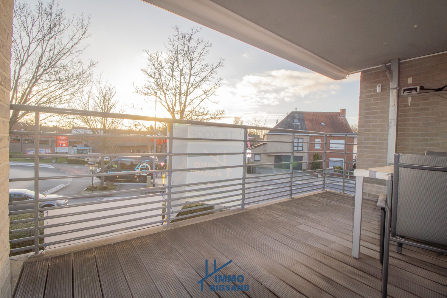 Aan de voorzijde geniet je van een groot en zonnig terras, ideaal om ontspannen te genieten van de buitenlucht. Extra comfort wordt voorzien dankzij elektrische rolluiken in de slaapkamers en een sunscreen in de leefruimte. Verder zijn er ook nog airco’s alsook centrale verwarming op gas.