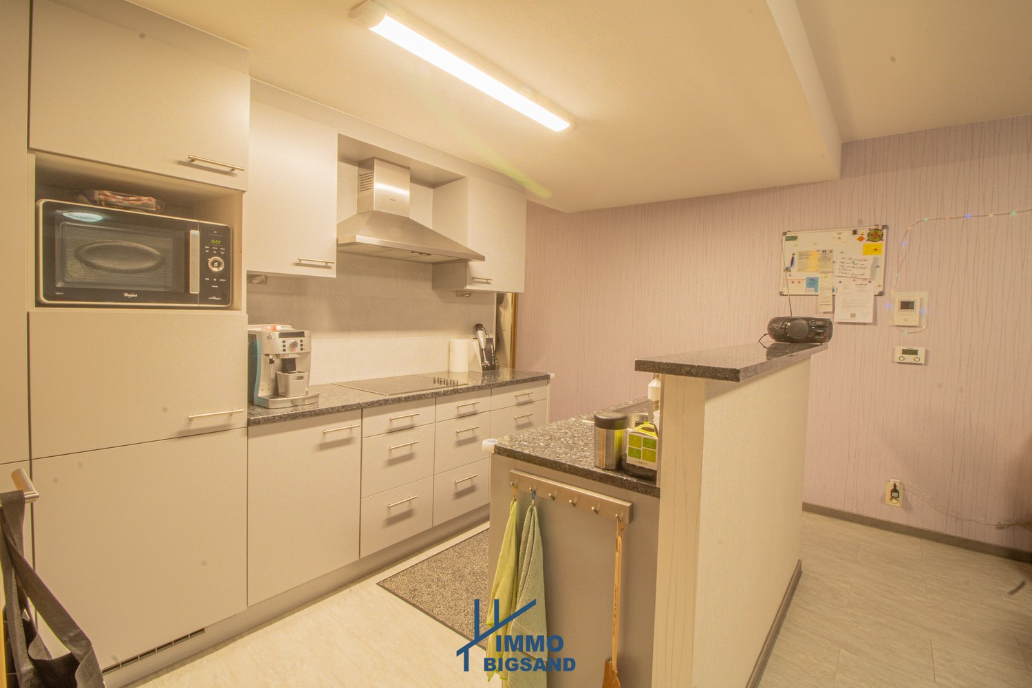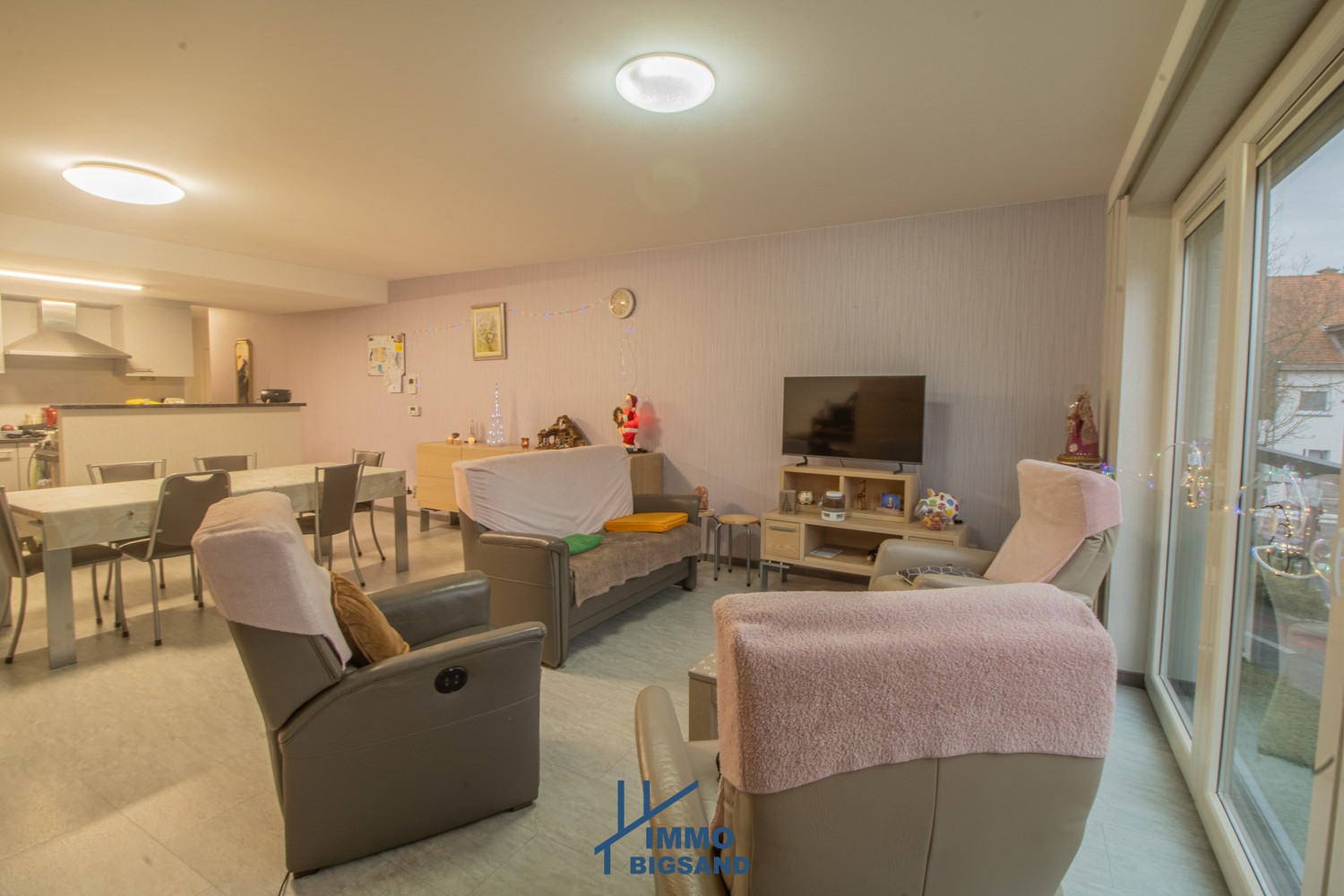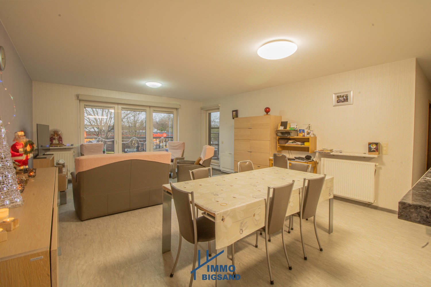 De lichtrijke leefruimte sluit naadloos aan op een mooie, volledig uitgeruste keuken en een praktische inkomhal. Er zijn twee slaapkamers, waarvan één momenteel werd ingericht als ruime dressing en een uitgeruste badkamer met inloopdouche en wastafel.