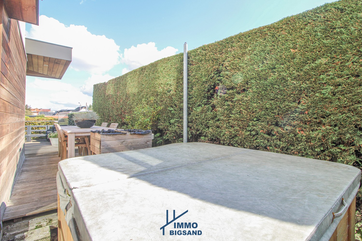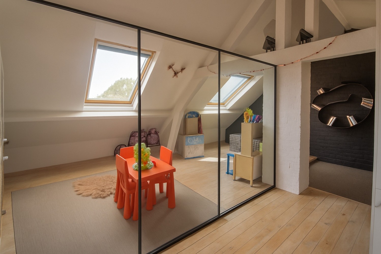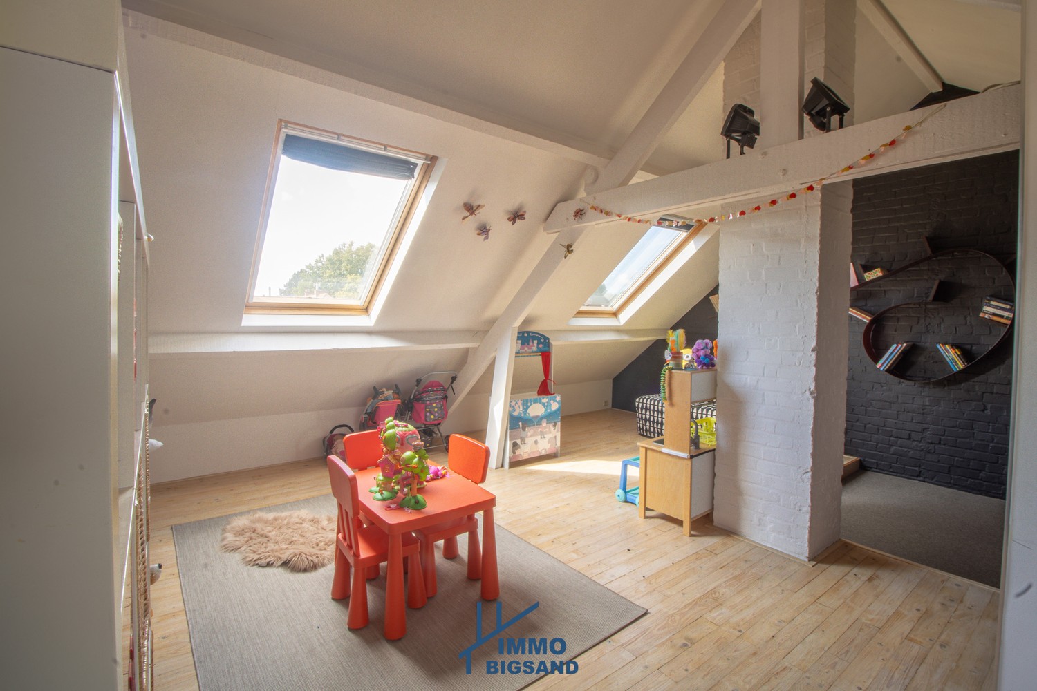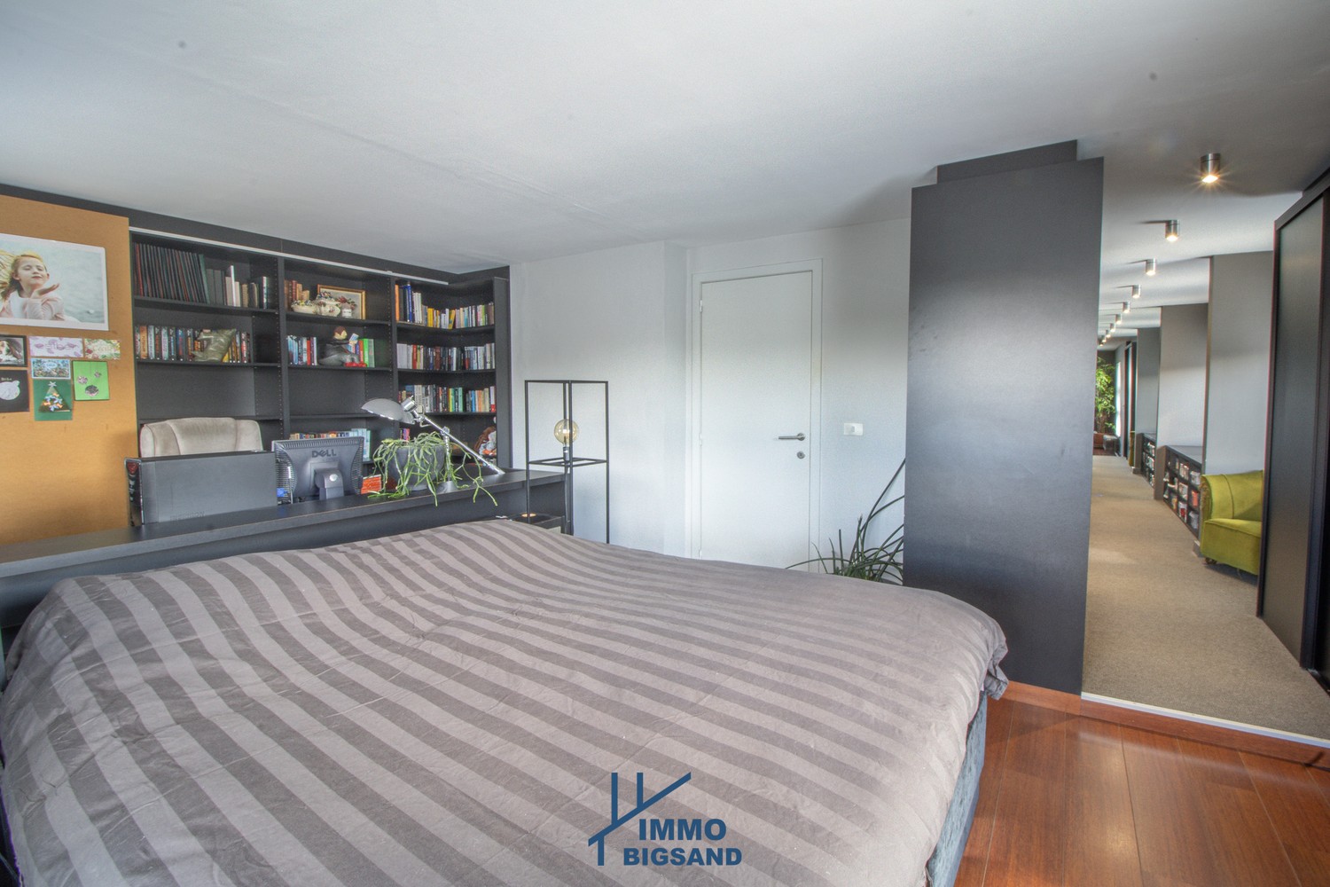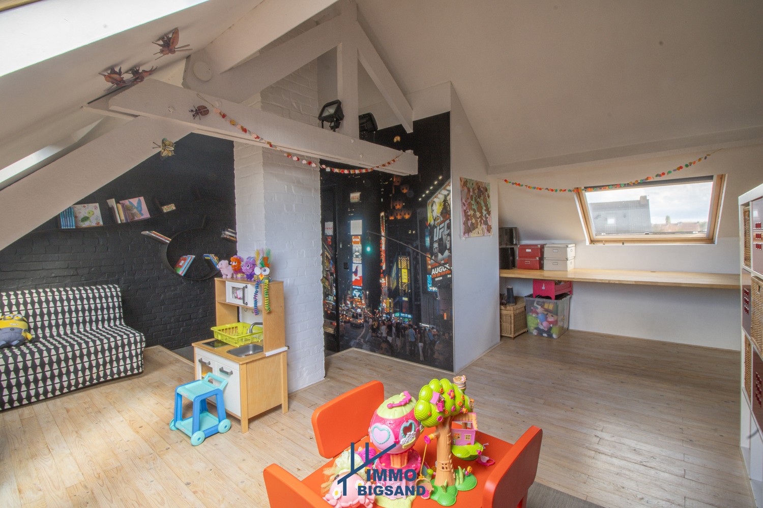 In een rustige, residentiële wijk van Kortrijk bevindt zich deze instapklare en stijlvolle woning die alle comfort en luxe combineert met een uitstekende ligging. De woning is volledig onderkelderd en beschikt over een inpandige garage, aangevuld met een aparte carport. Binnen geniet u van een lichtrijk interieur dankzij de grote raampartijen die uitzicht bieden op de volledig aangelegde tuin. Via een Zuidgericht balkonterras kan u genieten van de zon (ook aanwezigheid jacuzzi). De recent vernieuwde keuken is uitgerust met alle toestellen (combi microgolf/stoomoven en aparte oven.) en heeft ook nog een aparte diepe berging. De leefruimte en eetruimte  worden deels gescheiden door een open/zwarte wand die een esthetische meerwaarde creëert. Op de 1ste verdieping bevindt zich de ruime slaapkamer met bureau en aanpalend een ingebouwde dressing. Hiernaast heb je ook de badkamer met dubbele lavabo, bad, inloopdouche en apart toilet. Boven bevindt zich een grote zolderruimte die eenvoudig opnieuw kan worden ingedeeld in twee aparte slaapkamers, zoals voorheen (illustratie via laatste foto).