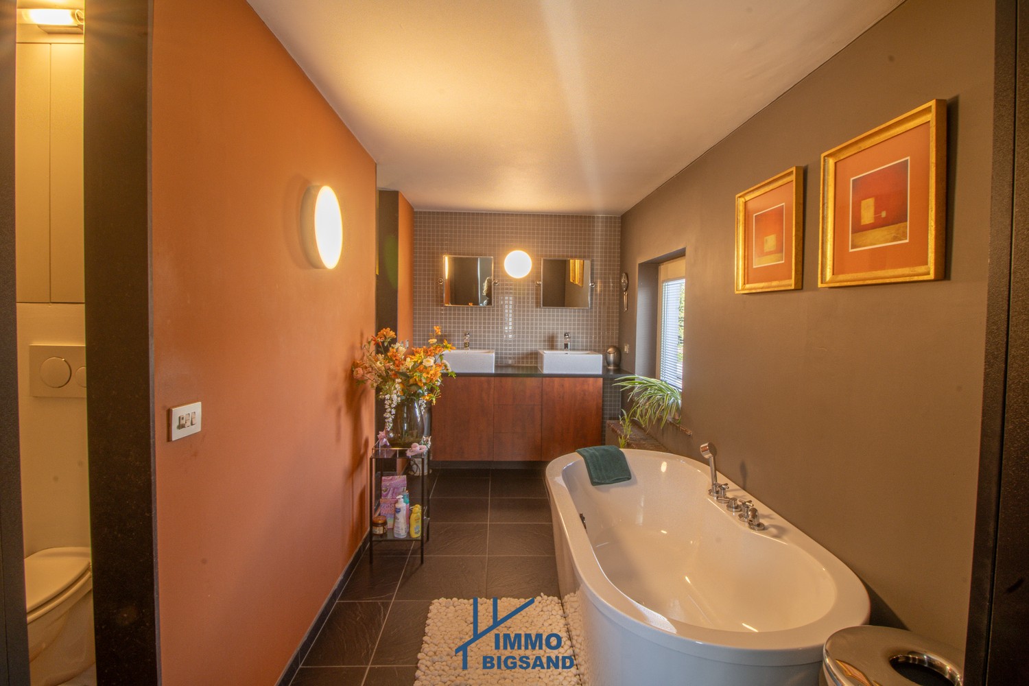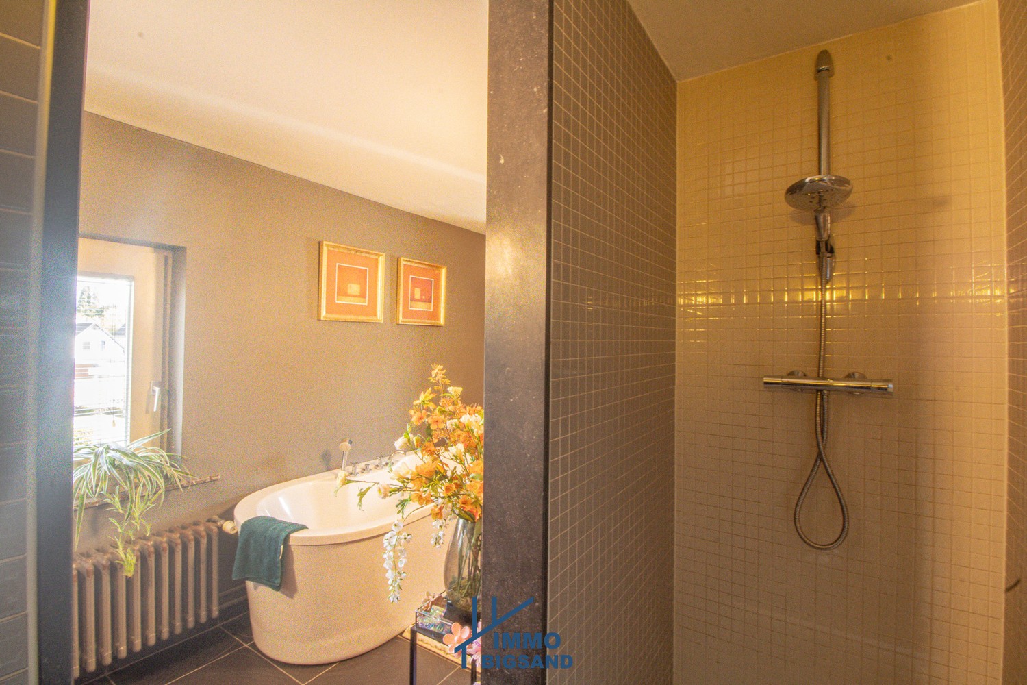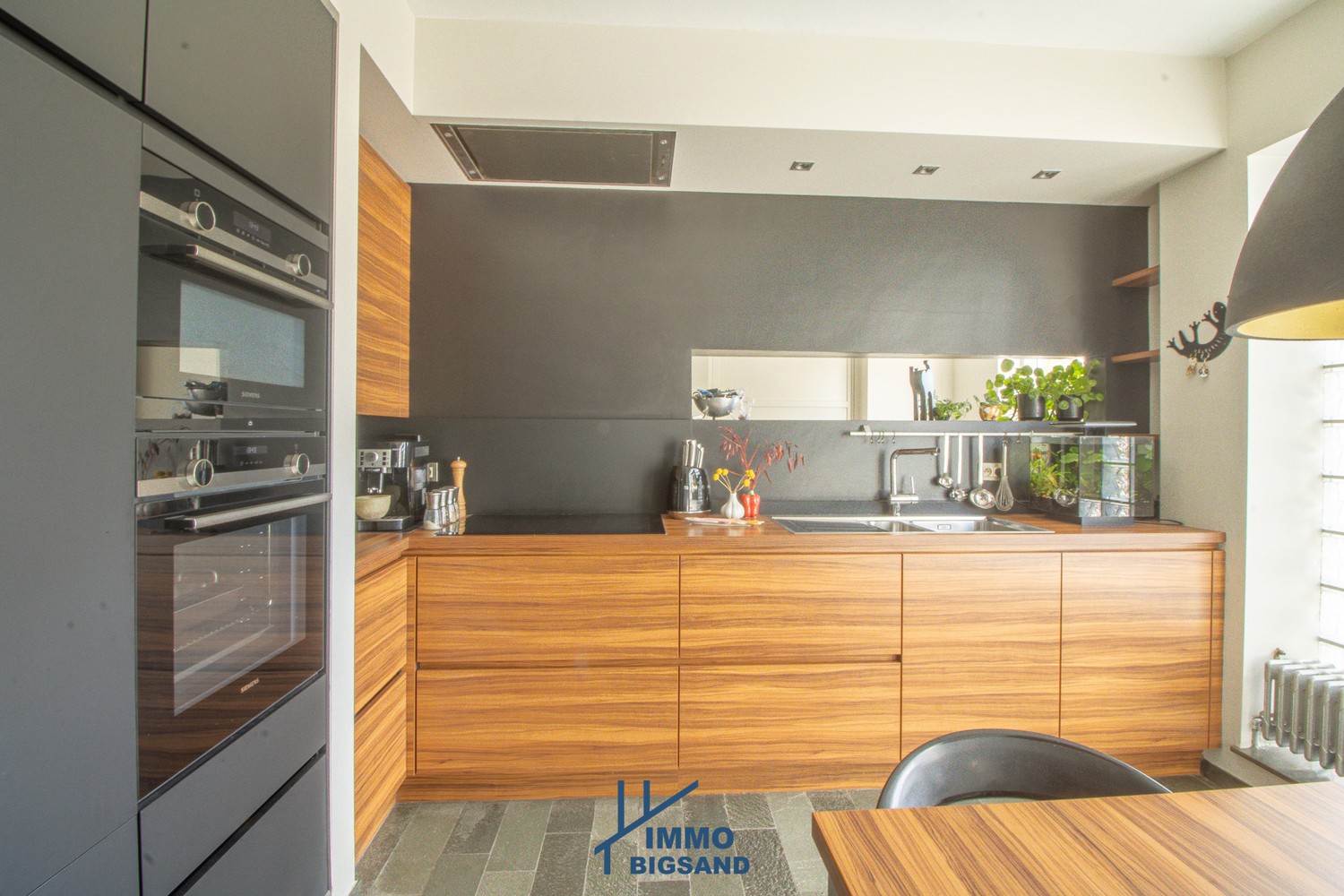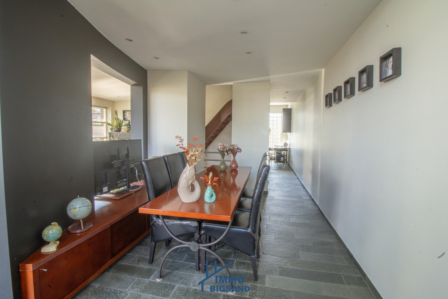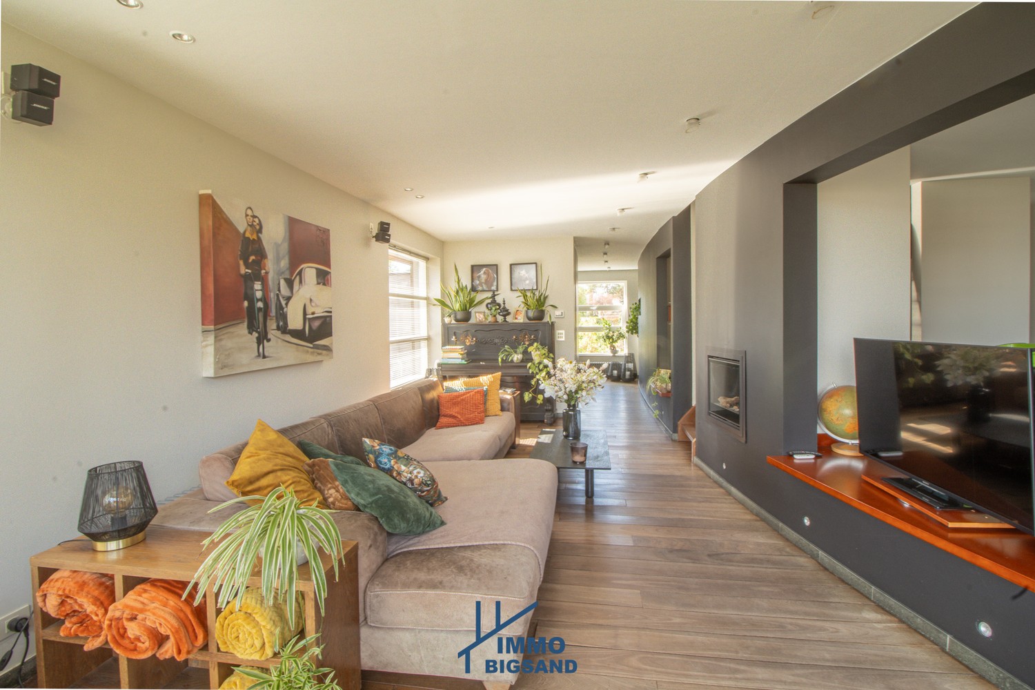 In een rustige, residentiële wijk van Kortrijk bevindt zich deze instapklare en stijlvolle woning die alle comfort en luxe combineert met een uitstekende ligging. De woning is volledig onderkelderd en beschikt over een inpandige garage, aangevuld met een aparte carport. Binnen geniet u van een lichtrijk interieur dankzij de grote raampartijen die uitzicht bieden op de volledig aangelegde tuin. Via een Zuidgericht balkonterras kan u genieten van de zon (ook aanwezigheid jacuzzi). De recent vernieuwde keuken is uitgerust met alle toestellen (combi microgolf/stoomoven en aparte oven.) en heeft ook nog een aparte diepe berging. De leefruimte en eetruimte  worden deels gescheiden door een open/zwarte wand die een esthetische meerwaarde creëert. Op de 1ste verdieping bevindt zich de ruime slaapkamer met bureau en aanpalend een ingebouwde dressing. Hiernaast heb je ook de badkamer met dubbele lavabo, bad, inloopdouche en apart toilet. Boven bevindt zich een grote zolderruimte die eenvoudig opnieuw kan worden ingedeeld in twee aparte slaapkamers, zoals voorheen (illustratie via laatste foto).