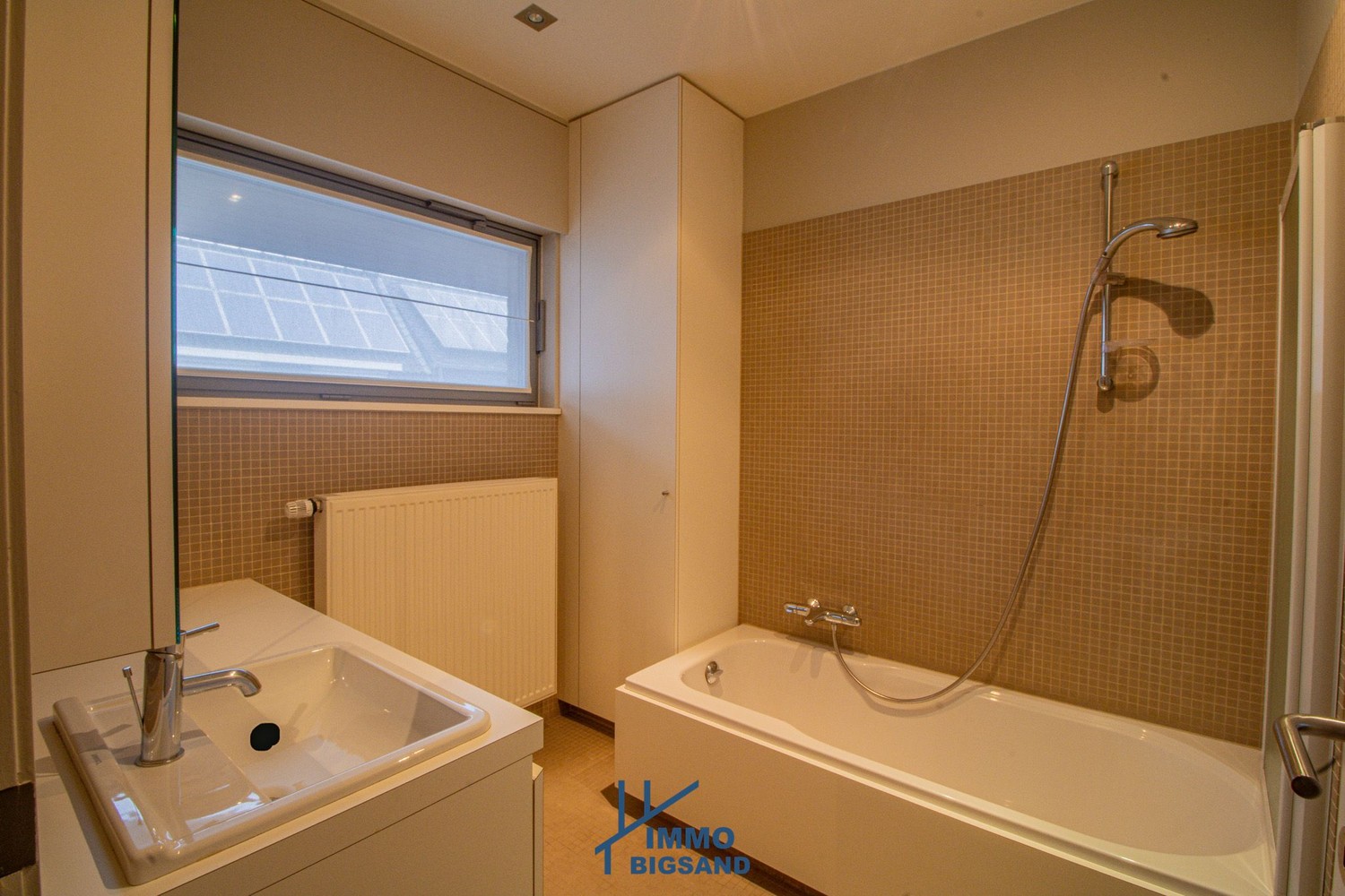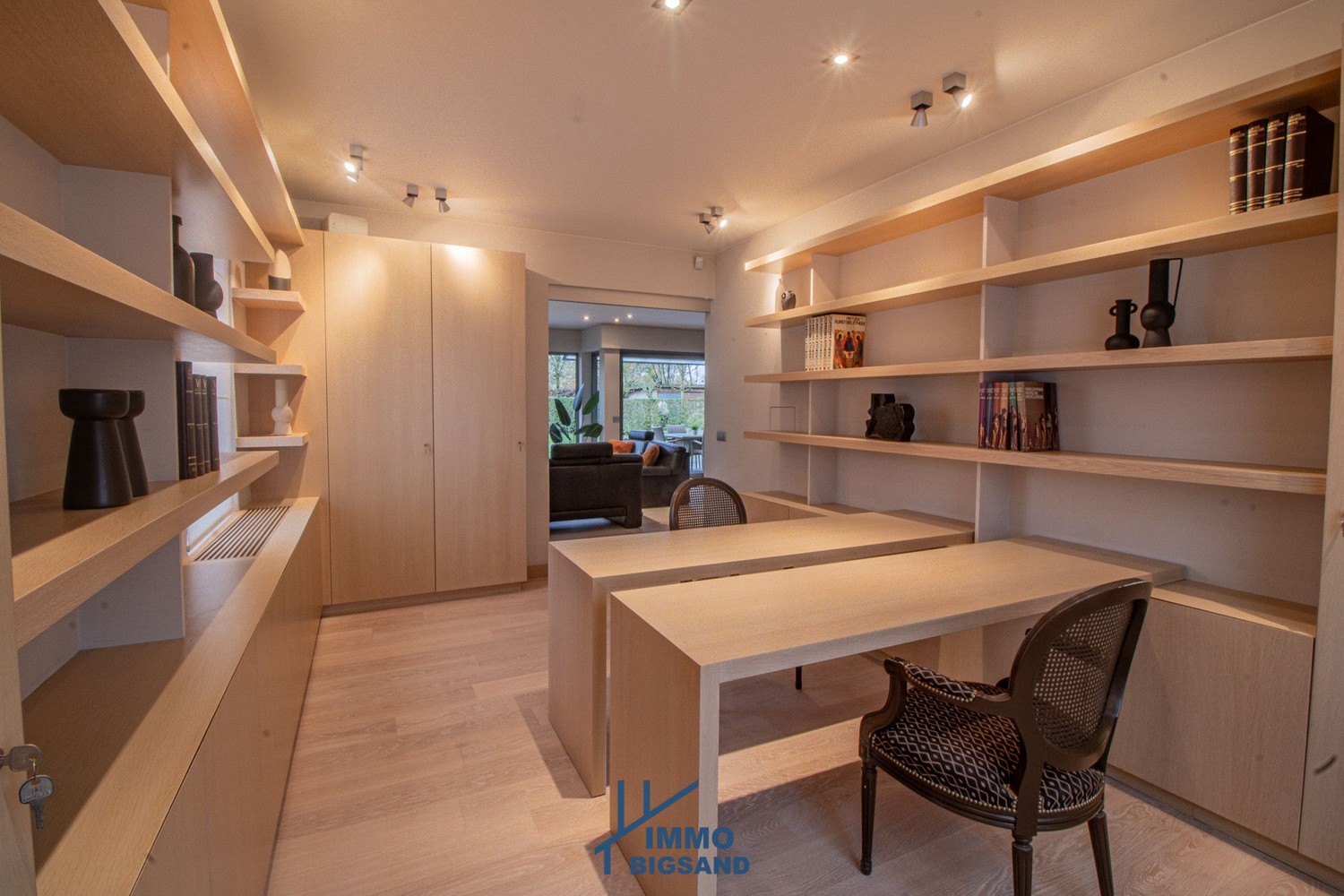 Een absolute troef is het op maat gemaakte bureau met ingemaakte kasten, perfect voor thuiswerk of een stille hobbyruimte.