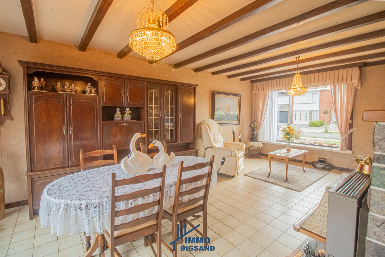 Het betreft hier een ruime woning met 4 slaapkamers in een rustige woonwijk. Het is een ruime bewoonbare oppervlakte van 130m² (met veranda erin). De woning heeft deels dubbel en enkel glas. Het is verwarmd met gaskachels. Er is ook een inpandige garage aanwezig. U komt binnen via de inkomhal met ernaast de ruime living. Er is ook een keuken die paalt aan de tuin met groot bijgebouw. Boven zijn er 4 volwaardige slaapkamers met aparte badkamer. Aanwezigheid zolderruimte. EPC E, dak geïsoleerd 10cm. Er dienen niet veel kosten te gebeuren om naar een EPC D te gaan.