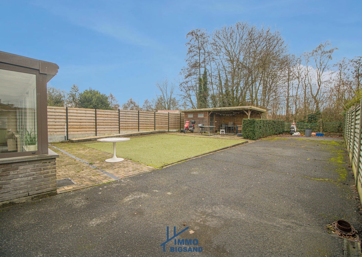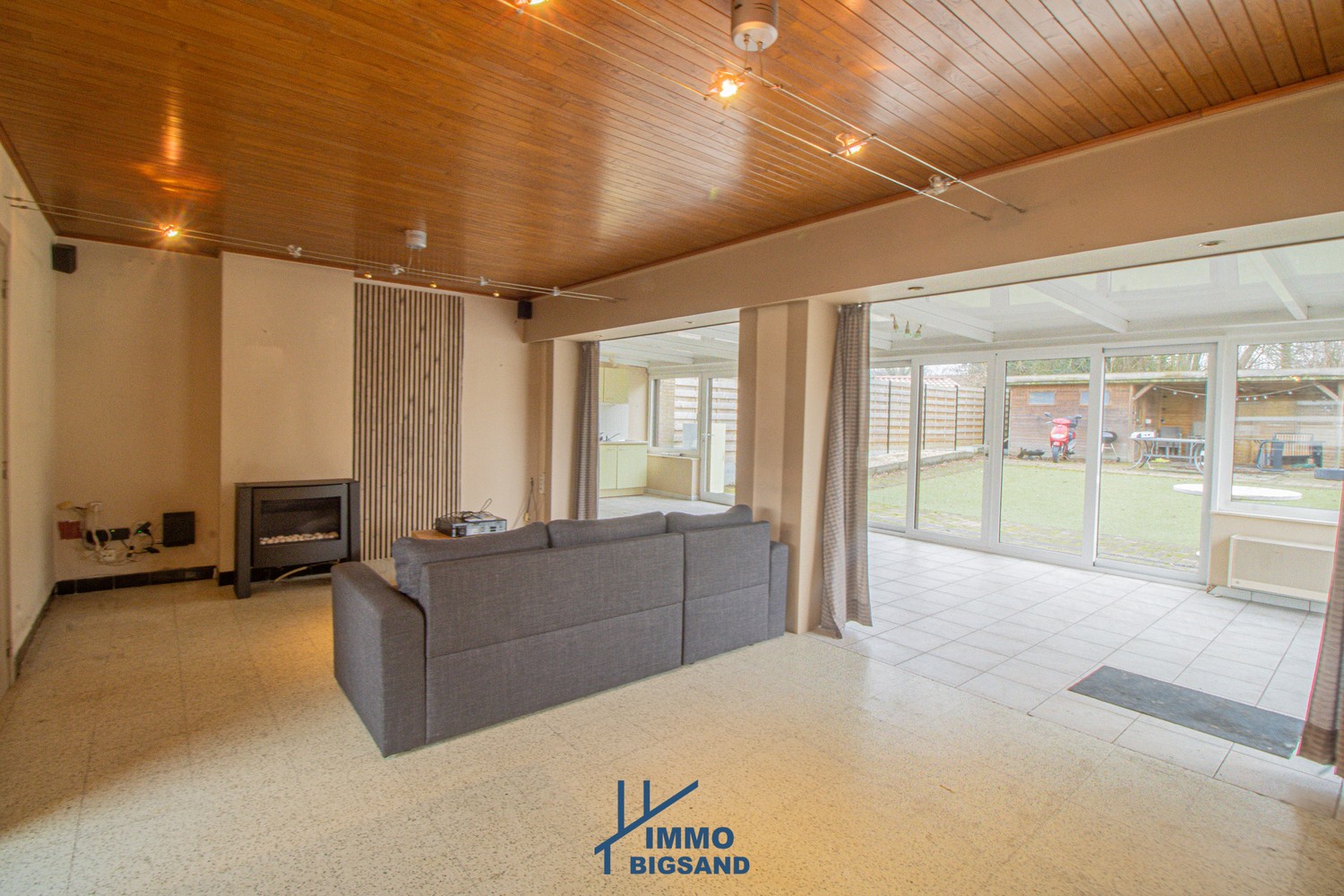 Via de veranda heb je rechtstreekse toegang tot de tuin dankzij grote raampartijen. De tuin beschikt ook over een terras en is tevens voorzien van een ruim tuinhuis met elektriciteit, ideaal als opslagruimte.