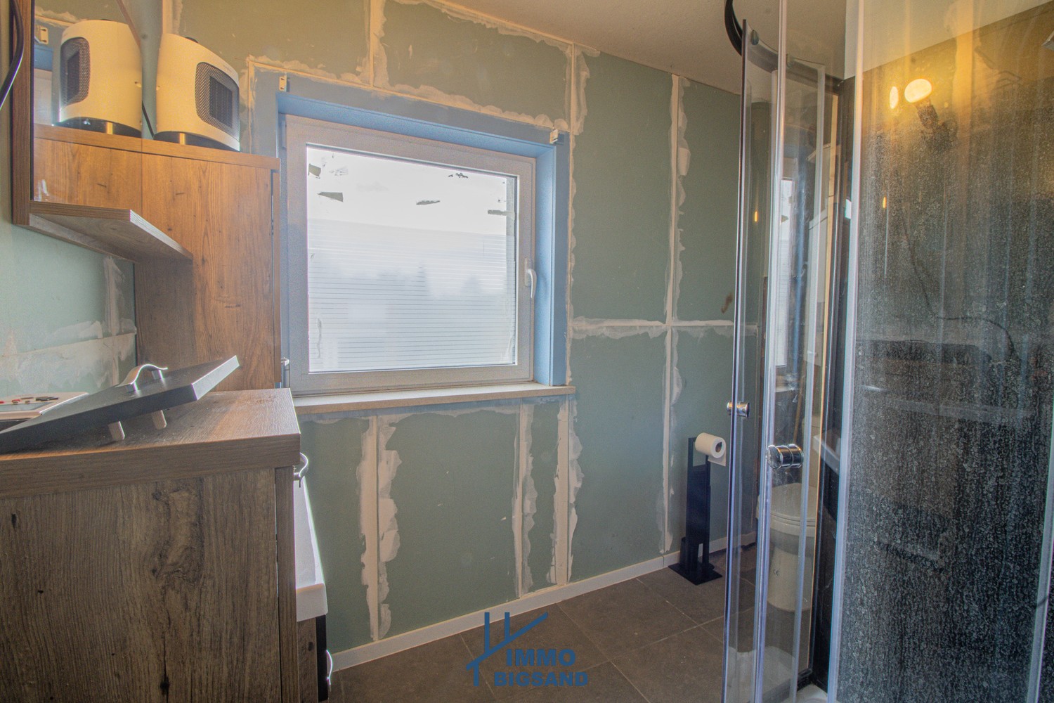 De woning wordt verwarmd via gaskachels.