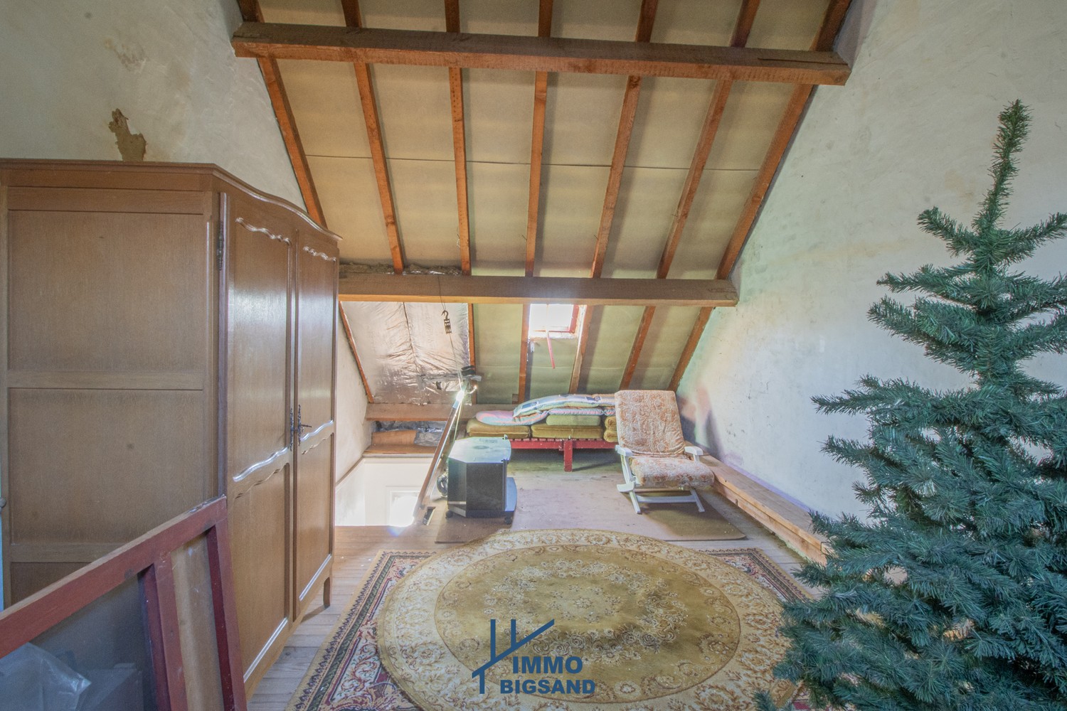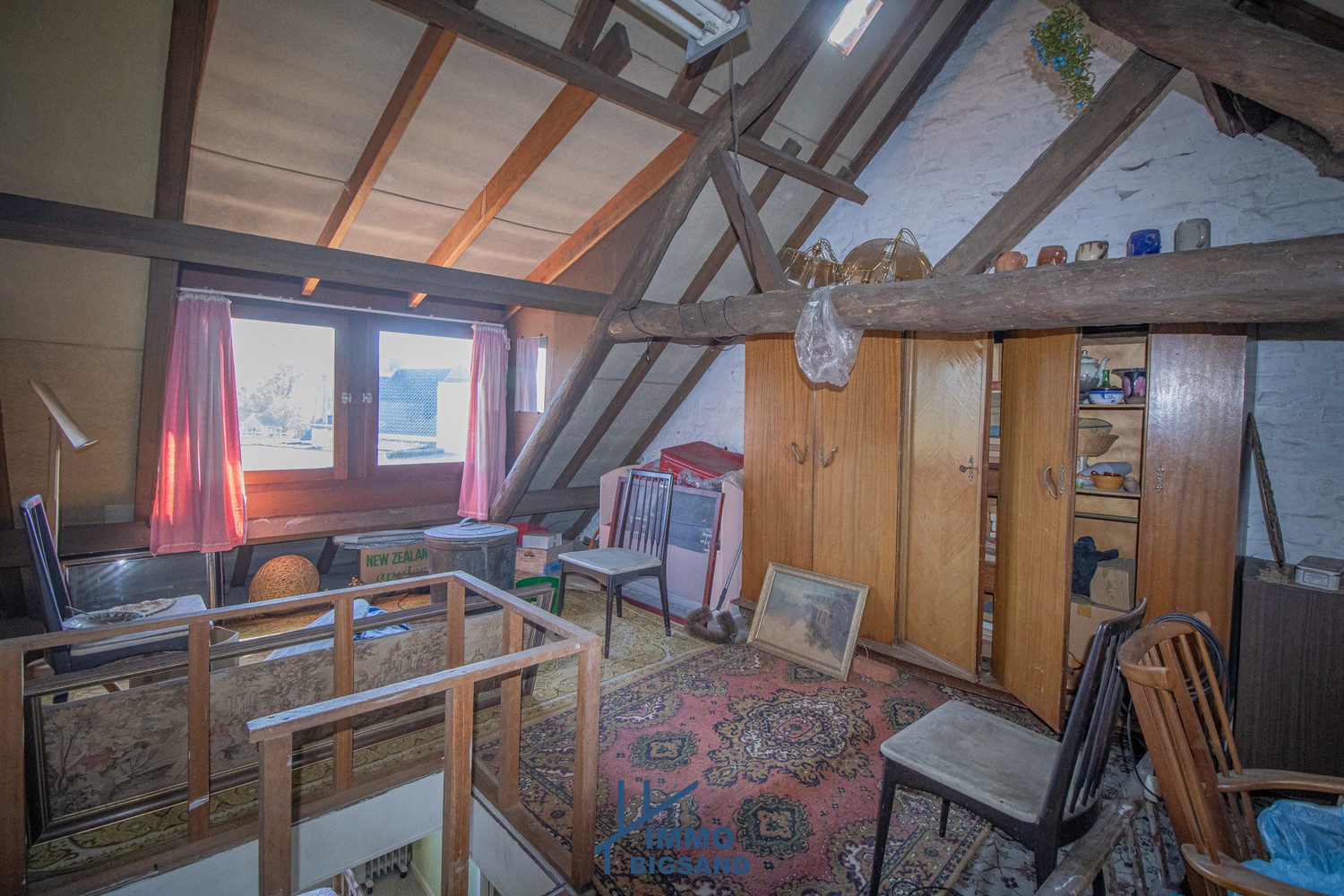 In het rechtergedeelte van de woning vindt u nog tal van authentieke elementen terug, zoals prachtige zichtbare balken, die zorgen voor extra charme en karakter.
